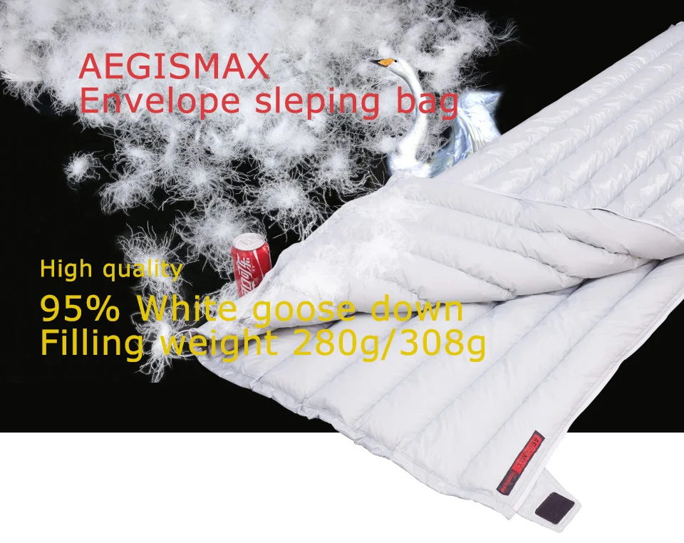 Удлиненный сверхлегкий спальный мешок AEGISMAX, Пух белой утки, 200x82 см
