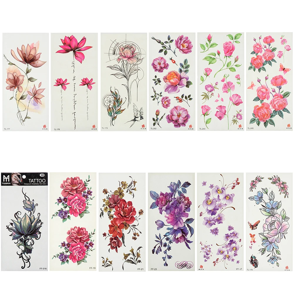 Реалистичная водостойкая временная татуировка с цветком розы, 1 шт.