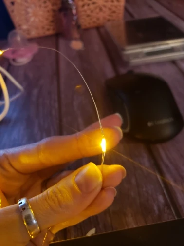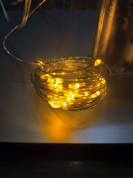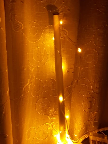 Очень приятный свет, проволока удобно сгибаеться, поэтому можно закрепить где угодно. Моё фото не передаёт какой свет на самом деле, очень красивый. Соответствует описанию, доставка 2 недели.