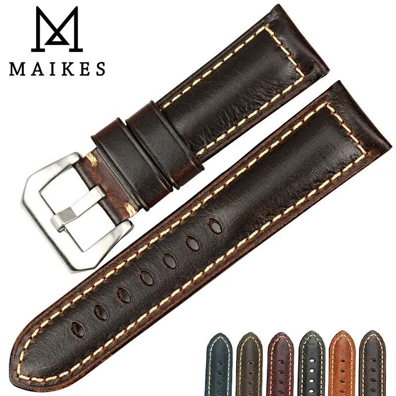 Ремешок MAIKES из итальянской коровьей кожи для наручных часов, винтажный браслет для часов, с пряжкой, Panerai, 20 мм 22 мм 24 мм 26 мм