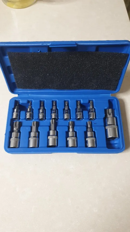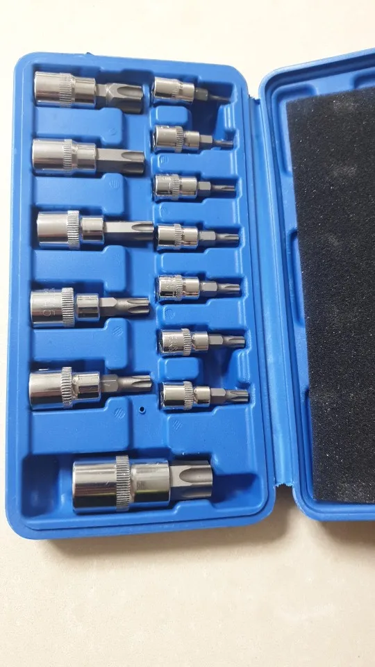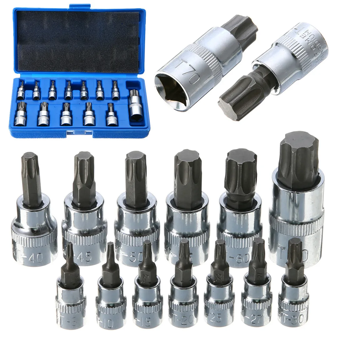 Набор гаечных ключей Mayitr, комплект из 13 предметов, торцевые насадки Torx Star с защитой от вскрытия, 14, 38, 12 дюйма, для ручных инструментов, в чехол