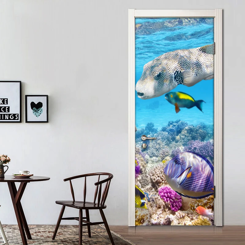 Подводный мир коралловые рыбы Современная гостиная спальня ванная комната Дверь ПВХ Настенная Наклейка водостойкие самоклеющиеся обои