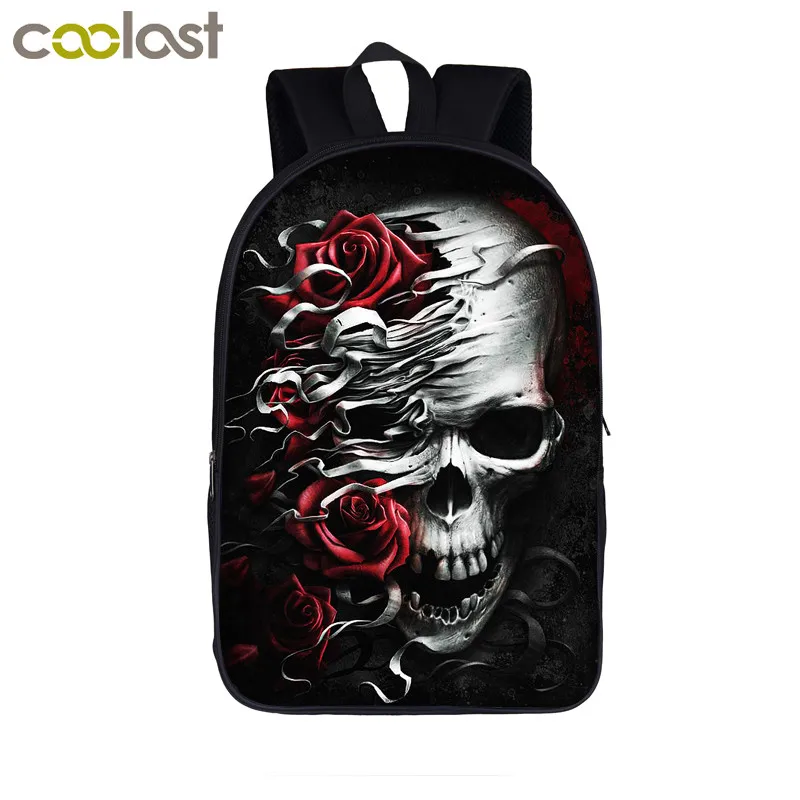 Рюкзак с розами для мальчиков и девочек-подростков, школьные ранцы в стиле панк с черепом из тяжелого металла, женский и мужской рюкзак для ноутбука, сумка для книг