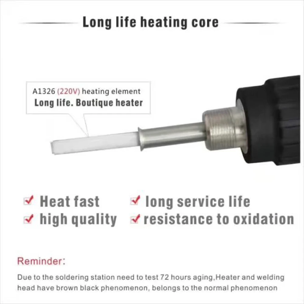Небольшой объем, но мощные функции, дизайн с двумя клавишами Быстрое восстановление температуры, всего за несколько секунд до 300 °C Высококачественный нагревательный элемент, Высокая Температурная чувствительность Два вида модели отображения температуры. (Градусы °C, Фаренгейт °F) Дополняет значение температуры через микрокомпьютер. Погрешность менее +/-5 °C Высокая термостойкость, высокая изоляция, Мягкий сенсорный кабель питания. ЖК-дисплей. Дисплей температуры четкий с первого взгляда. Высококлассные специальные материалы, с высокой термостойкостью и сильным антистатическим покрытием. 2. Параметры:Диапазон температур