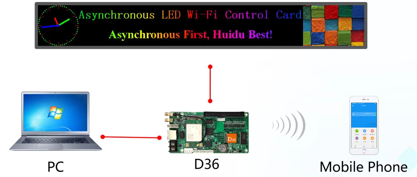 Бесплатная доставка Huidu HD-D36 асинхронная WIFI полноцветсветодиодный ная видеокарта управления