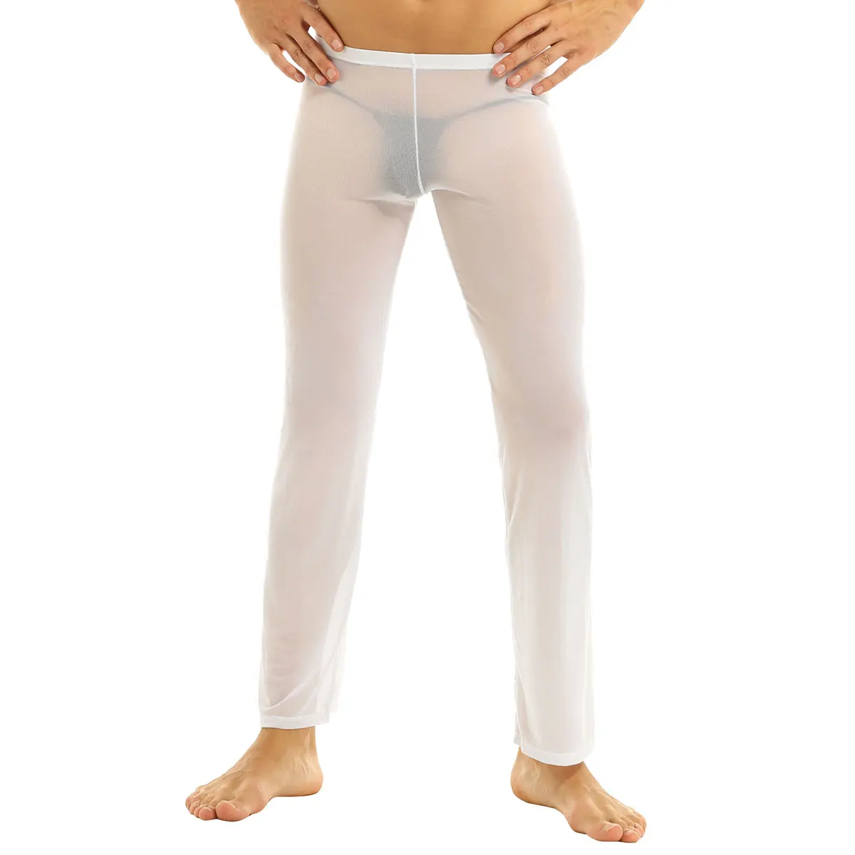 Горячие мужские Стрейчевые прозрачные домашние штаны для занятий спортом, йогой, тренажерным залом, длинные брюки, нижнее белье.