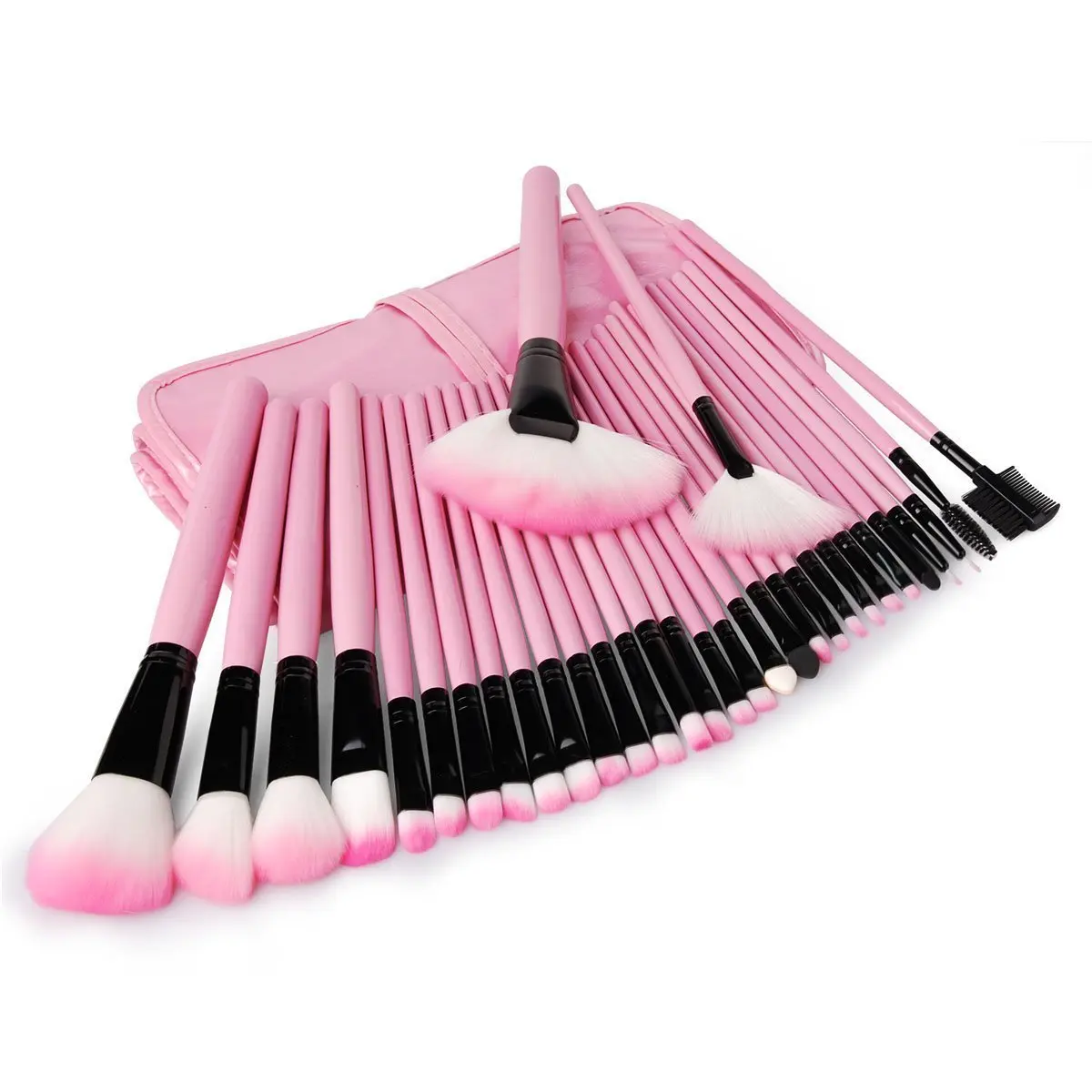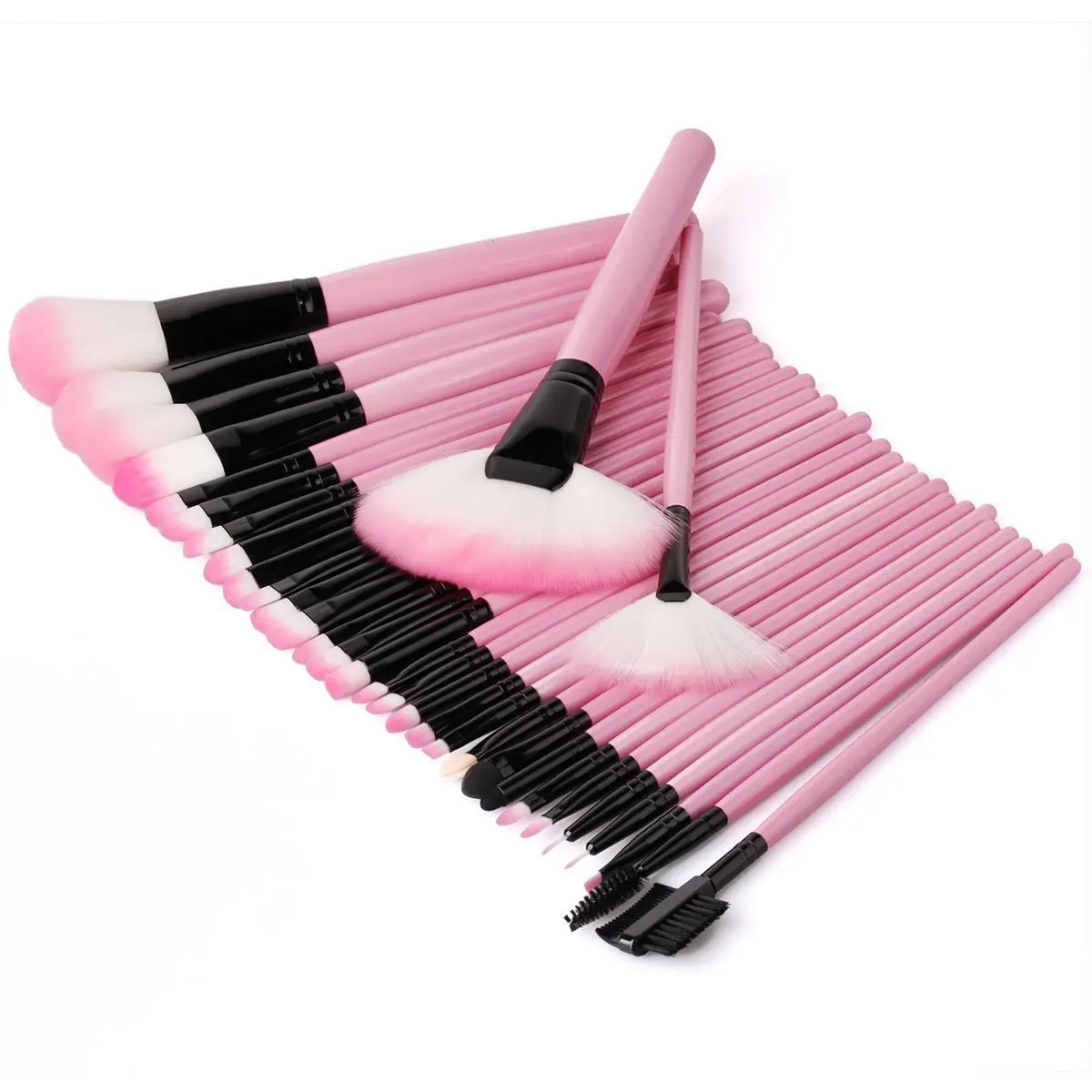 Всего 32 кисти для макияжа лица: кисть для основы, кисть для консилера, кисть для теней, кисть для бровей, кисть для румян, кисть для губ, кисть для туши...