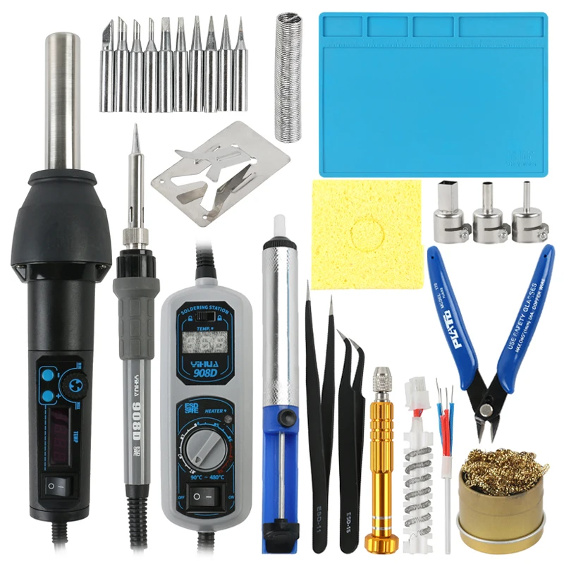 YIHUA 27 в 1 портативный Цифровой паяльник BGA набор для переделки 8858I пистолет горячего воздуха 908 Электрический паяльник набор инструментов для сварки и ремонта