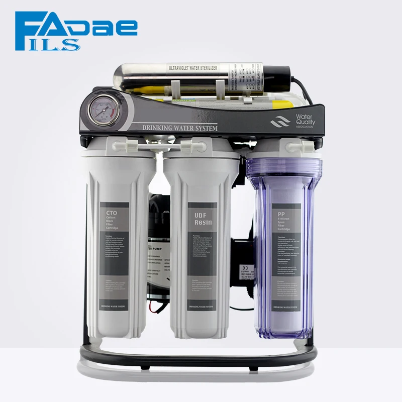 7-ступенчатая Бытовая система обратного осмоса 75GPD с полимерным фильтром и УФ-стерилизатором, удаляет ионы кальция, магния, бактерии из воды