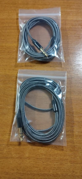 Заказ получен, доставка быстрая, качество хорошее, покупал для наушников Creative Aurvana Live! у родного кабеля сопротивление 0,8 Ома у данного 1 Ом, не знаю хорошо это или плохо, качество звучания вроде не изменилось, материал оплетки веревка.