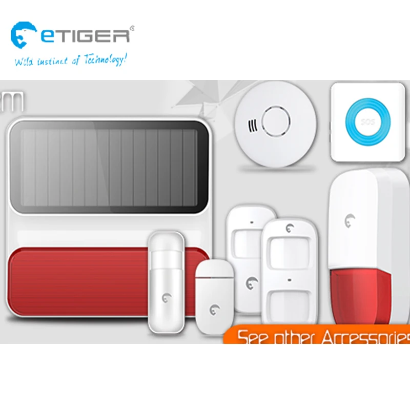 Датчик сигнализации s и аксессуары для дверей, датчик движения, детектор дыма, сигнальная сирена на солнечной батарее для использования в помещении и на улице, ETIGER S4Plus