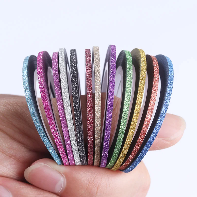 Набор из 12 рулонов для наращивания ногтей, матовая блестящая наклейка 2 мм, многоцветный инструмент для укладки ногтей (случайный цвет)