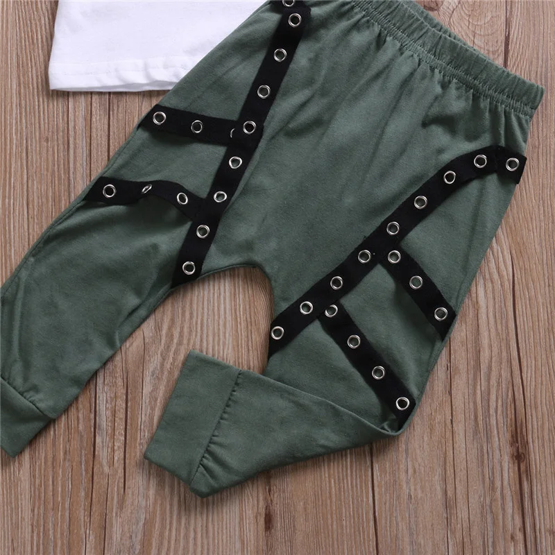 Детская летняя футболка с коротким рукавом и надписью и зеленые штаны, Helen115, комплект из 2 предметов, От 3 месяцев до 3 лет