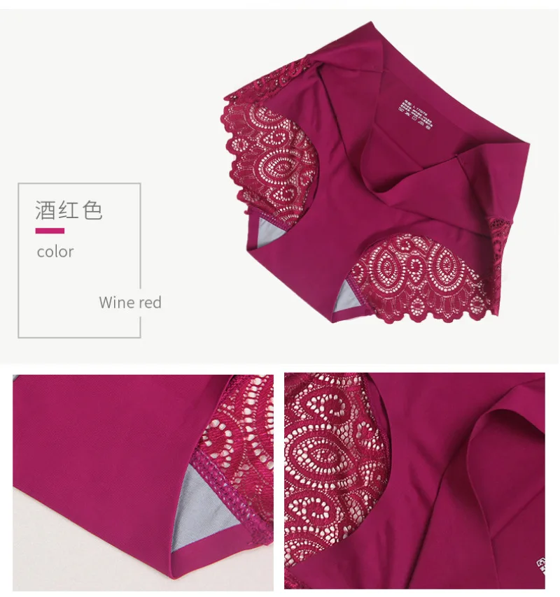 Трусы женские кружевные хлопковые бесшовные, со средней талией
