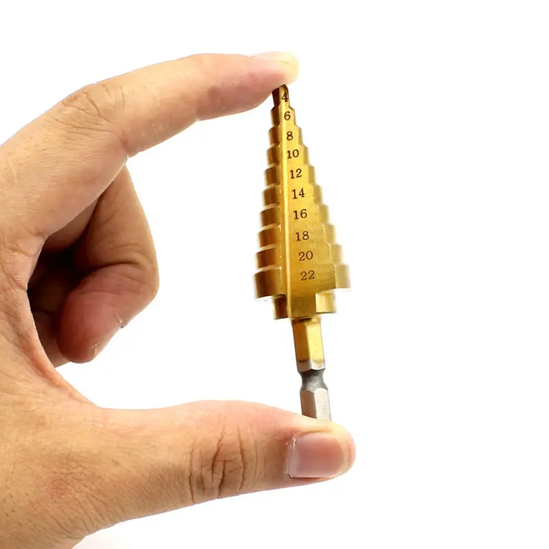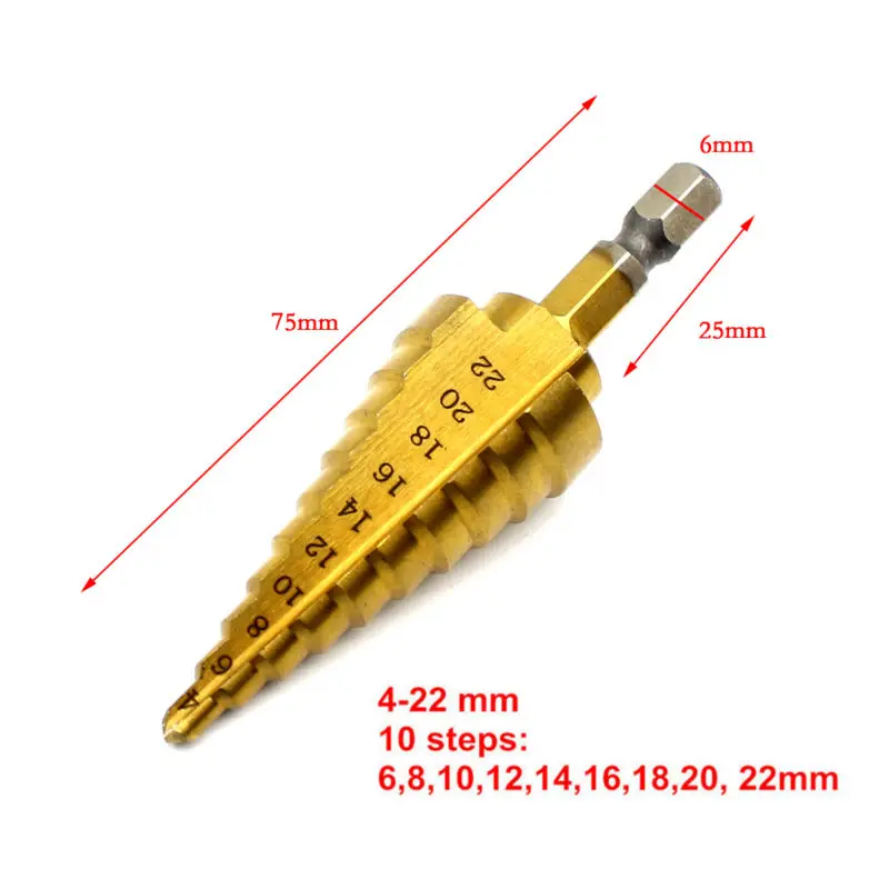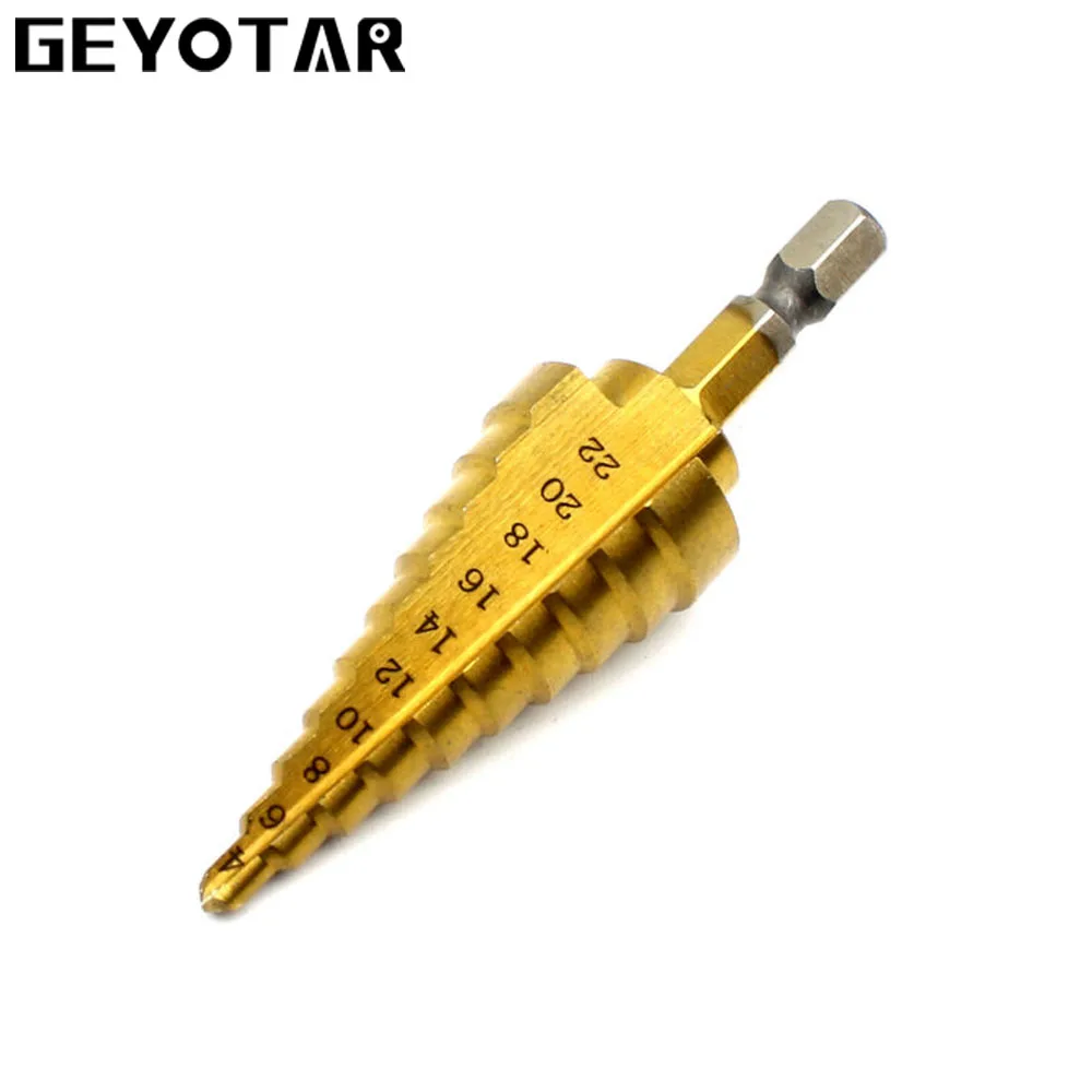 1 шт. шестигранное титановое ступенчатое Коническое сверло, резак для отверстий 4-22 мм HSS 4241 для металлообработки, сверления дерева, аксессуары для электроинструмента