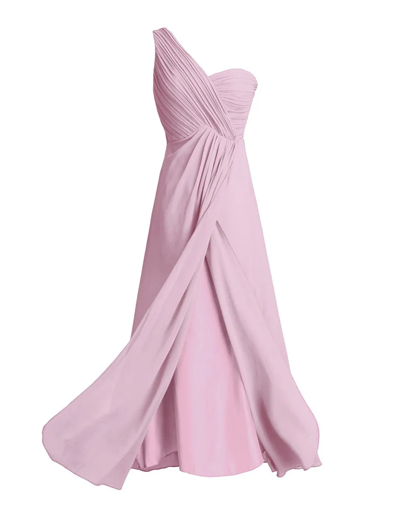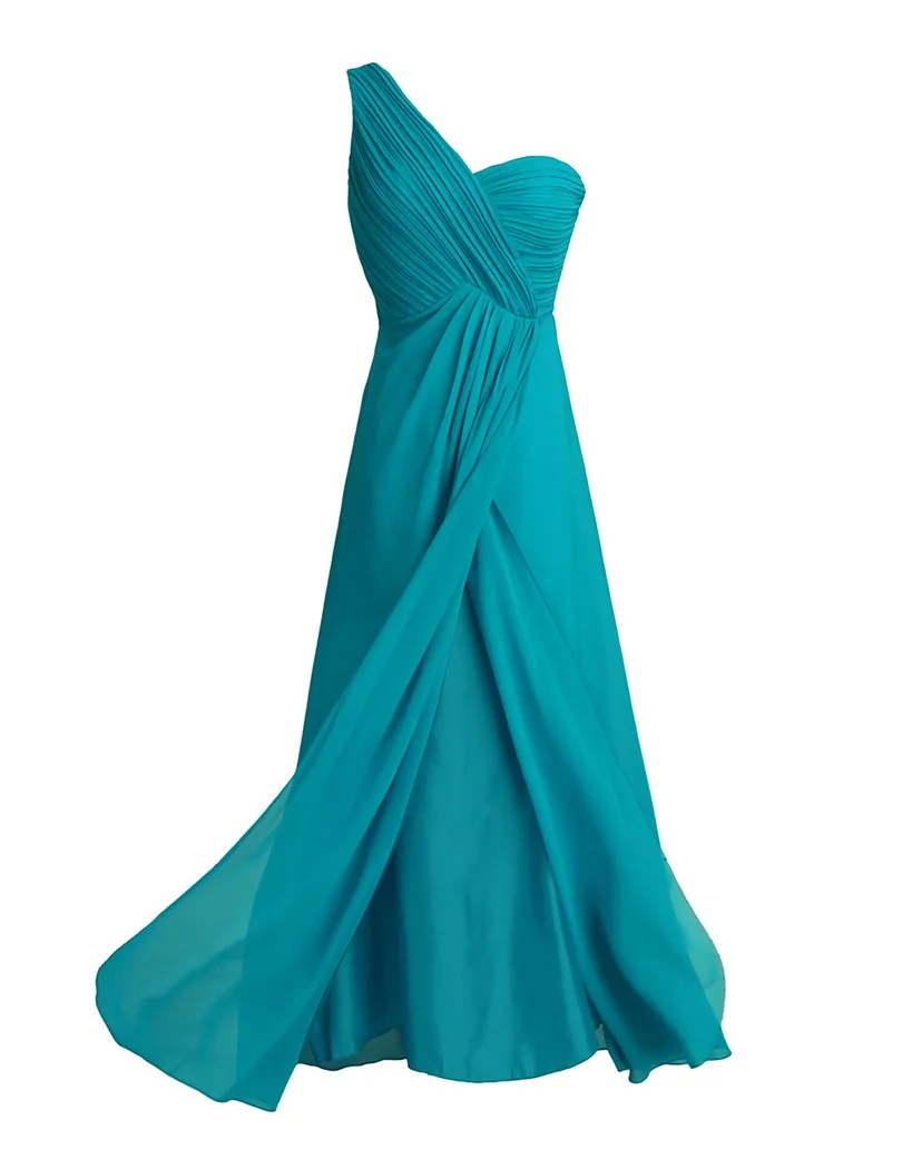 Дизайн с разрезом на одно плечо и разрезом спереди; Скрытая застежка-молния сзади с застежкой.
