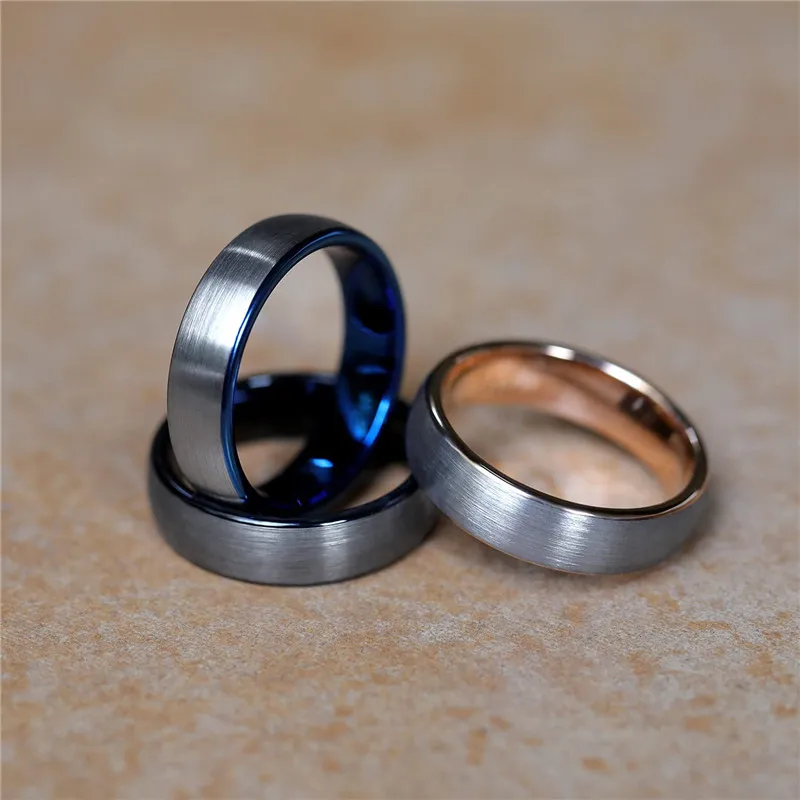 Tigrade Трендовое кольцо с синей внутренней стороной 6 мм, мужские ...