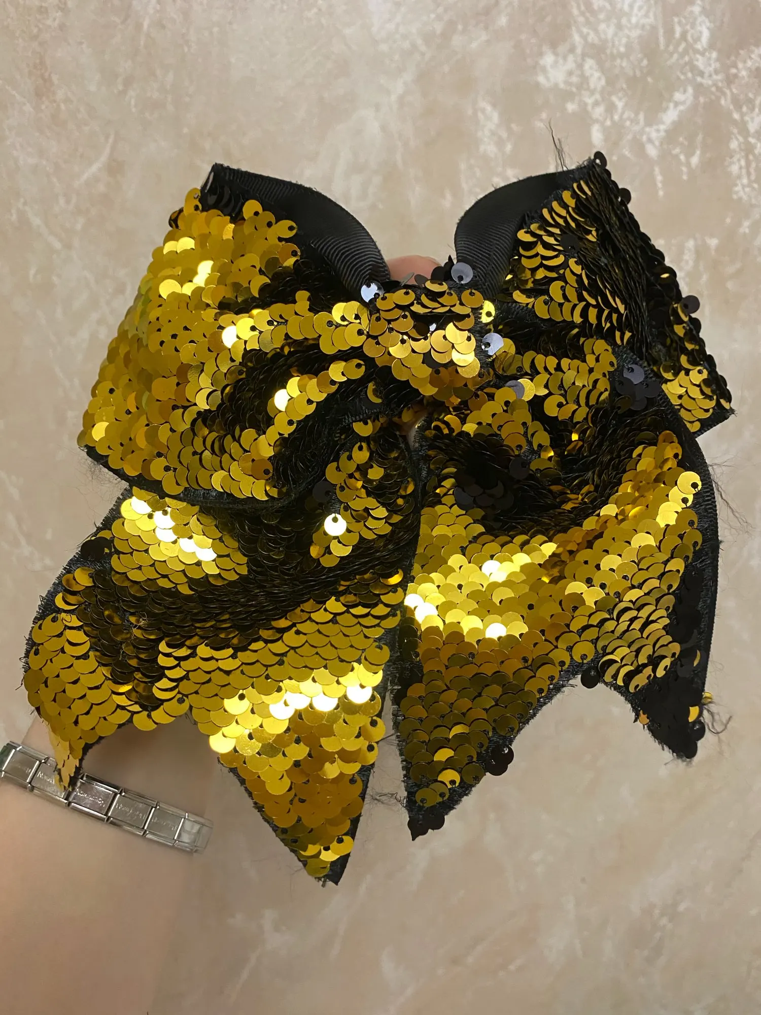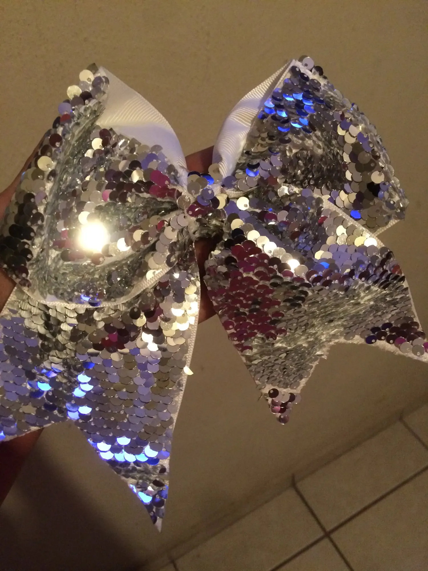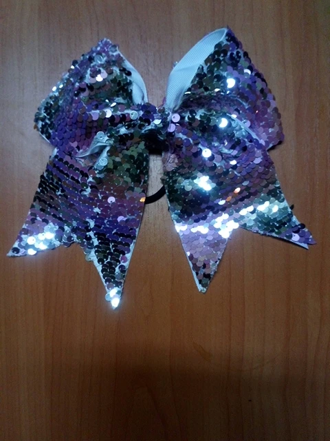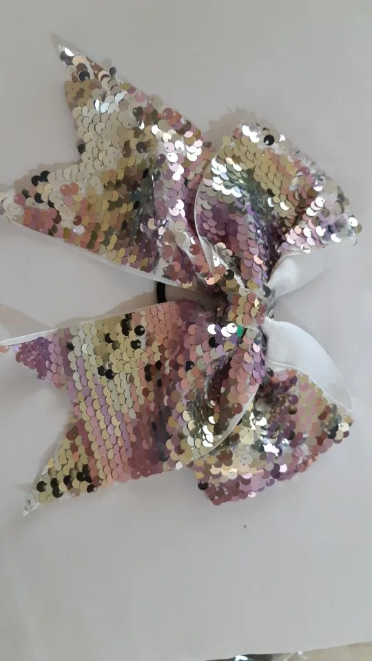 Очень красивый. Но хлипкий, по краям пайетки обрезаны, кусочки осыпаются. Лучше после покупки края бантика сразу обработать клеем.