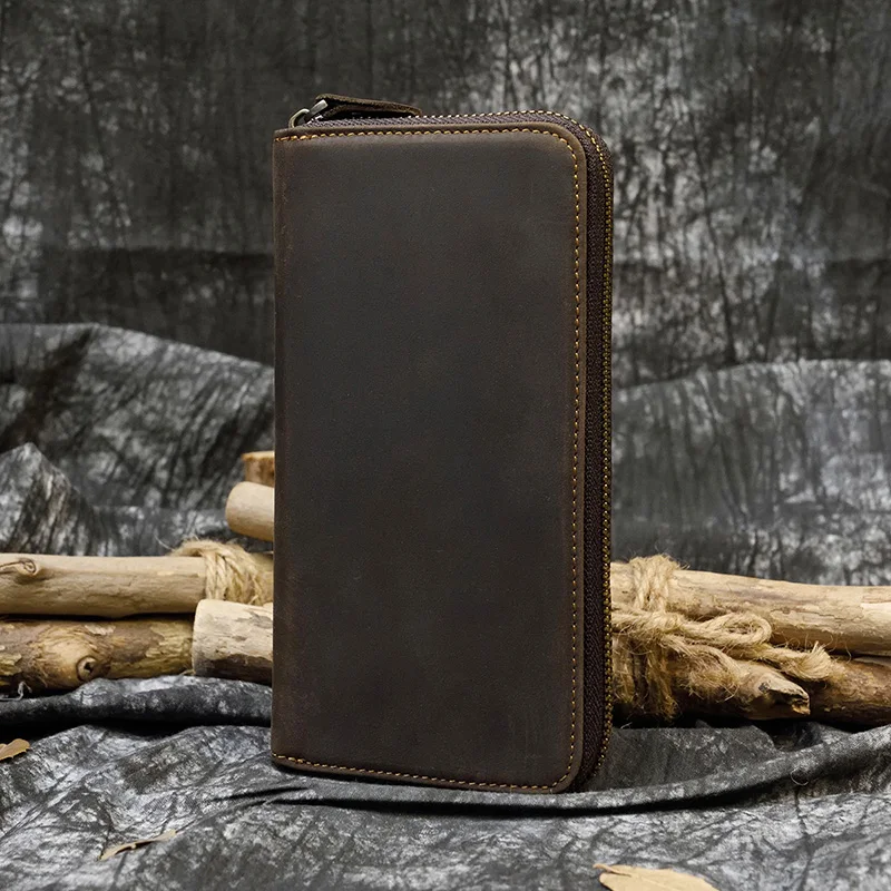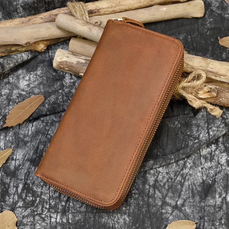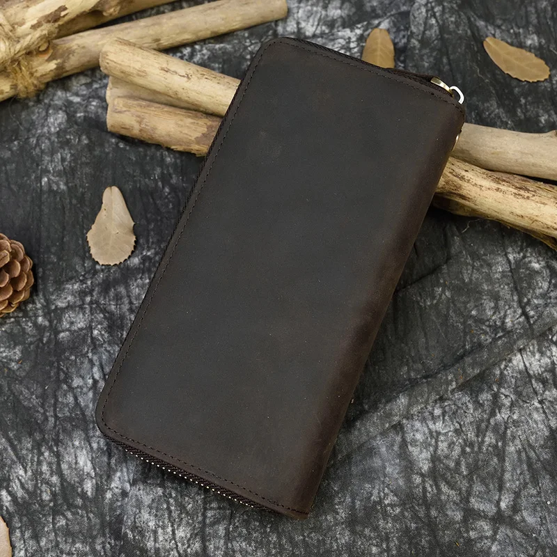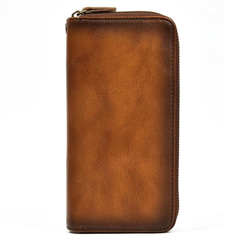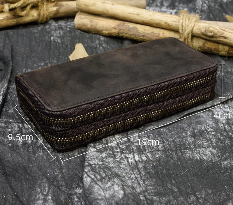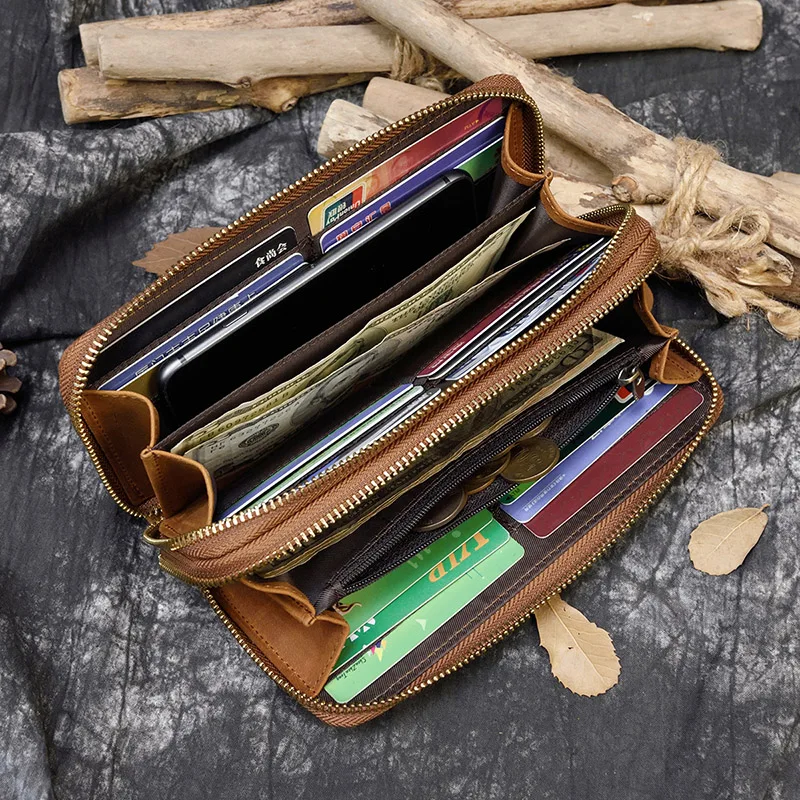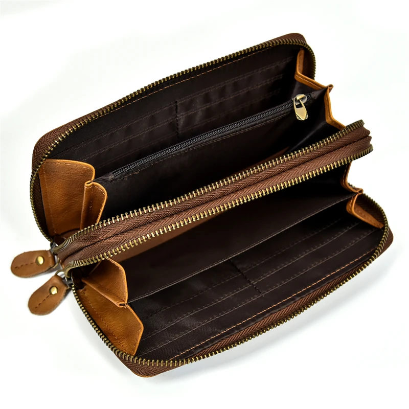 Мужской кожаный клатч MAHEU, на двойной молнии, с отделением для карт 24 дюйма, Винтажный Длинный кошелек, Billetera, натуральная кожа