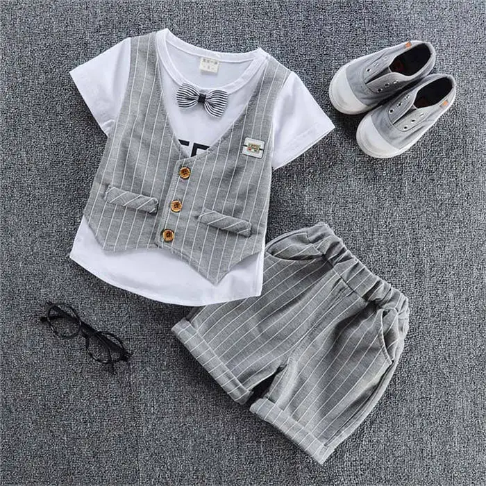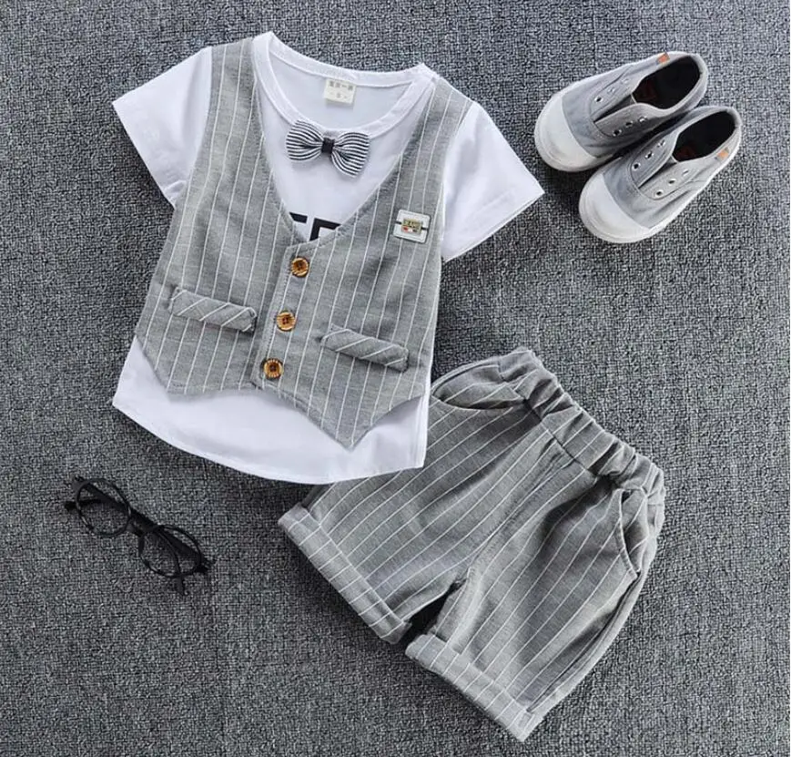 Летний костюм для маленьких мальчиков, комплект одежды в джентльменском стиле, футболка + шорты, повседневный костюм для бега, наряды для малышей, 2020