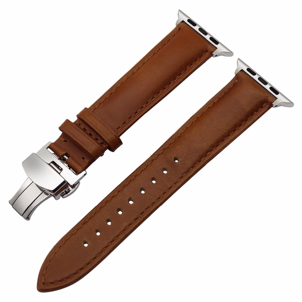 Ремешок итальянский из натуральной кожи для iWatch, стальной браслет с застежкой-бабочкой для Apple Watch 7 SE 6 5 4 3 2 1 38 мм 40 мм 41 мм 42 мм 44 мм 45 мм