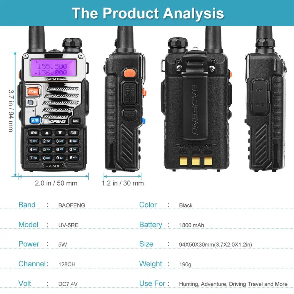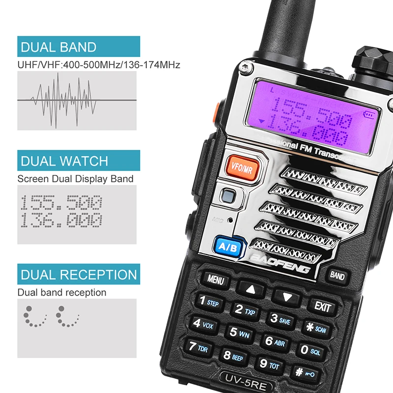 Baofeng UV-5RE иди и болтай Walkie Talkie иди и Портативный радио двухдиапазонный УКВ 136-174 МГц UHF 400-520 МГц двухстороннее радио 5 Вт 128CH