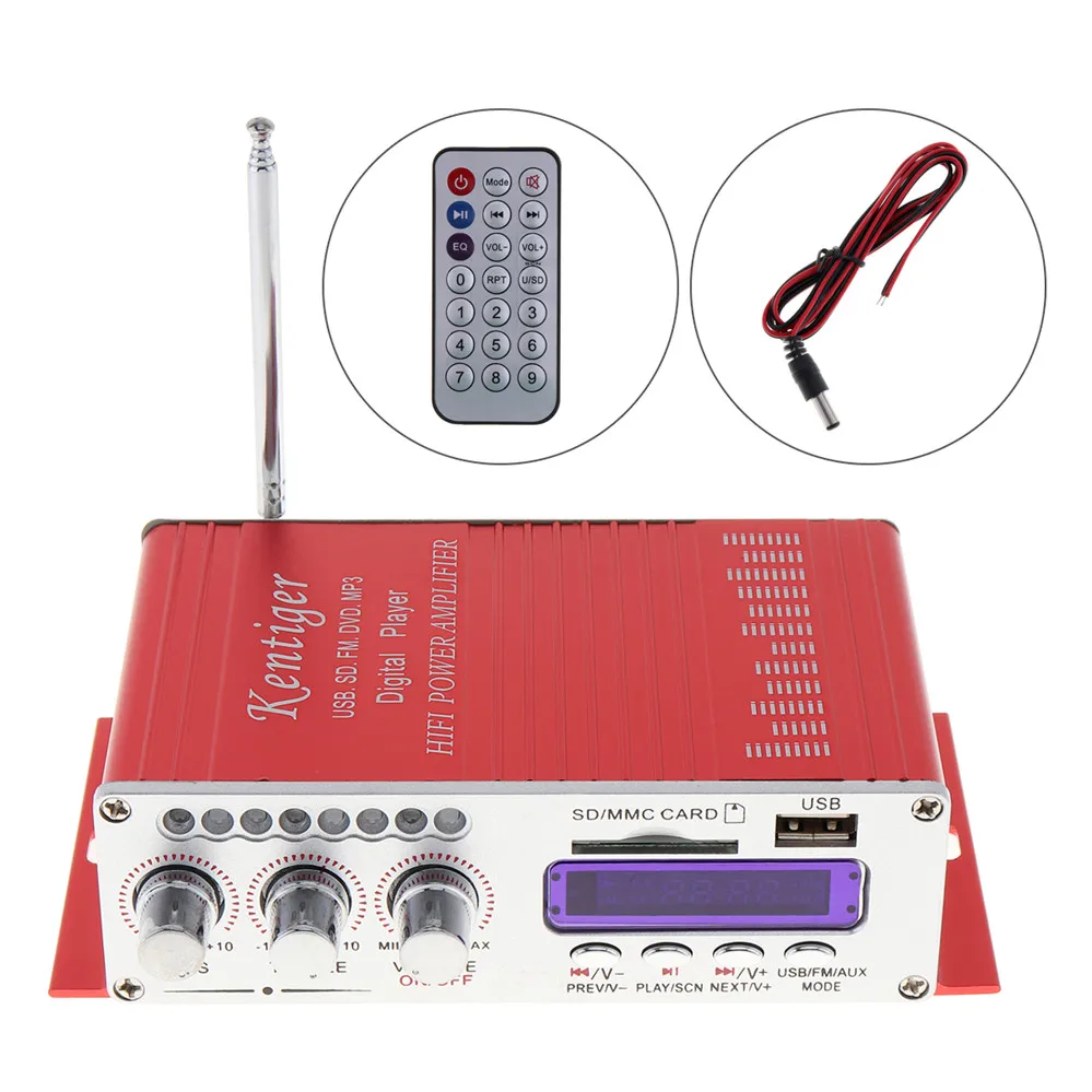 Универсальный 2CH Hi-Fi цифровой аудиоплеер автомобильный усилитель FM Радио стерео плеер Поддержка SD USB MP3 DVD вход с дистанционным управлением