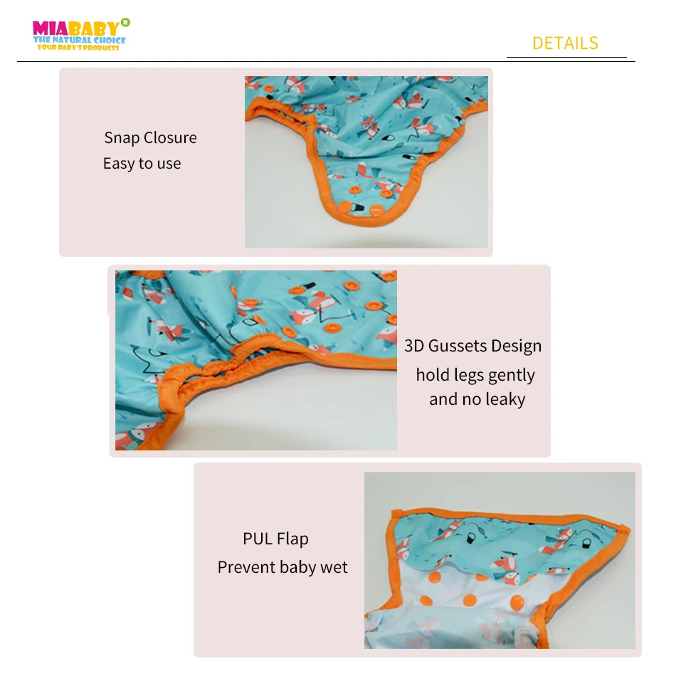 Моющиеся экологически чистые тканевые подгузники Miababy, регулируемые подгузники, подходят для детей 0-2 лет, 3-15 кг