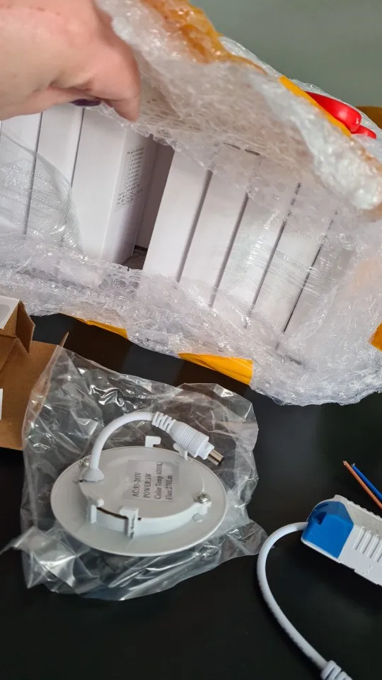 Получил два светодиодных светильника, заказанных на 11,11, 3 недели назад. Протестированы и находятся в рабочем состоянии. Но прилагаемые металлические зажимы не прикреплены к потолочным светильникам, а также нет инструкции о том, как это сделать. Это может создать проблему для тех, кто не знаком с DIY и не имеет правильных инструментов для крепления зажимов. Потолочные светильники хорошо защищены пузырчатыми обертками, но по-прежнему картонные коробки сжимаются во время путешествия. К сожалению, светильники не повреждены.