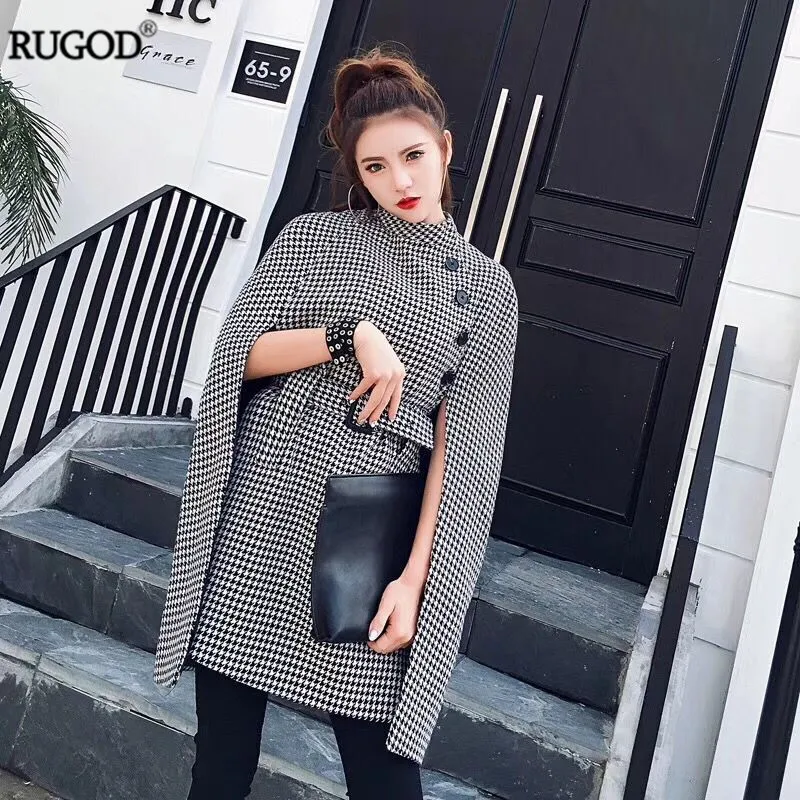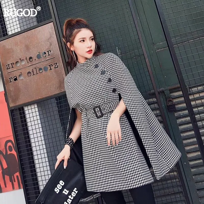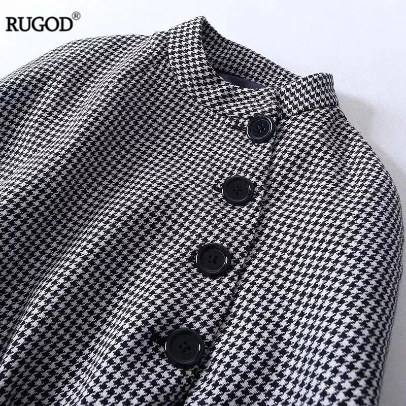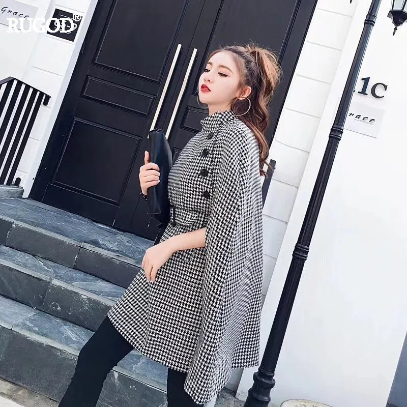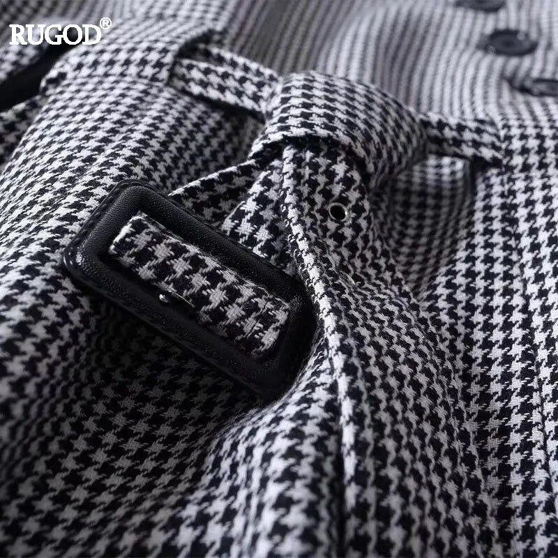 Rugod 2021, женский новый осенний Длинный плащ, глобальная Мода, клетчатая вязаная ветровка, женский длинный пояс, туника, пальто, Femme, пальто