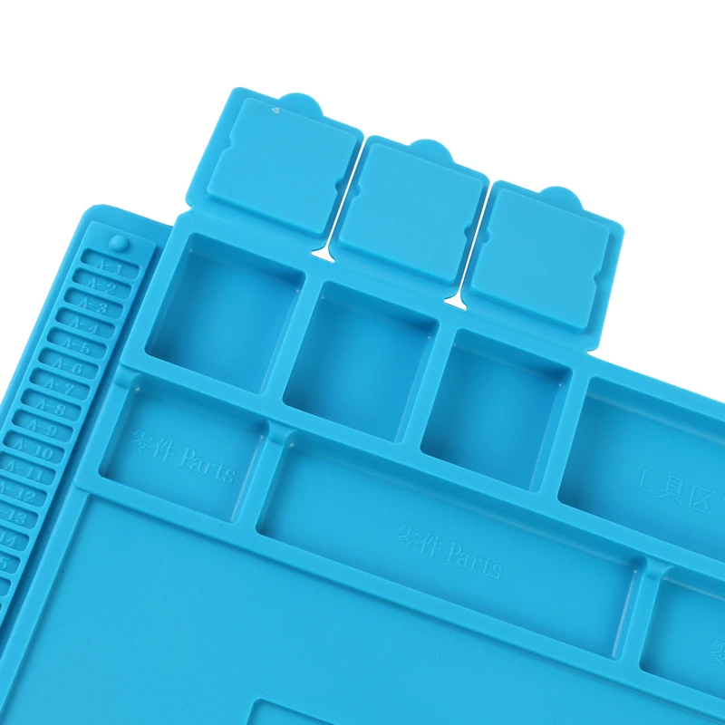 Функция: Устойчивость к высокой температуре 500 C. Расположение отверстия для установки винтов, микросхем и небольших деталей. Линейка встроенных весов (0 - 36 см) в нижней части. Сделайте ремонт легким. Хороший партнер для пистолета горячего воздуха. Только небольшая Секция является магнитной (отмечена на прокладке), может использоваться для надежного удержания винтов. Он немного слабый, не такой сильный магнитный. Спецификация: Тип: теплоизоляционная прокладка Термостойкость: 500 C Материал: экологически чистый органический силикон Цвет: синий Упаковочный лист: Теплоизоляционная прокладка X1