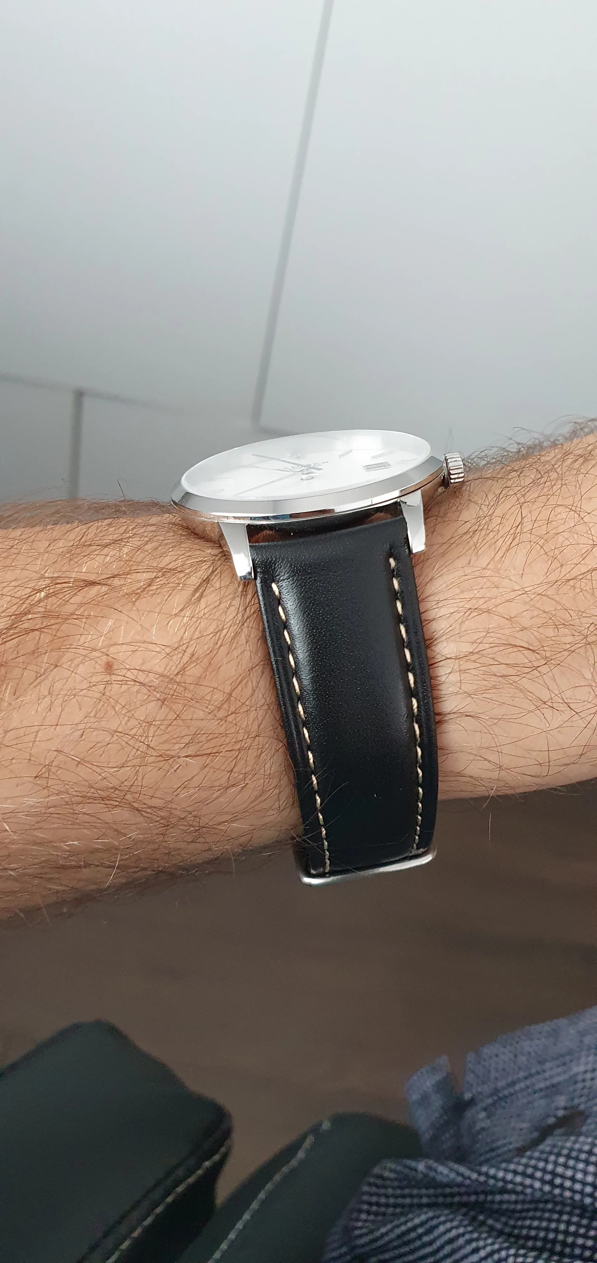 Ремешок понравился. Не уверен, что натуральная кожа, но выглядит и ощущается вполне на уровне, солидно и качественно. Размер в точности соответствует описанию, отправка и доставка быстрые. В общем, рекомендую, по соотношению "цена-качество" ремешок отличный.