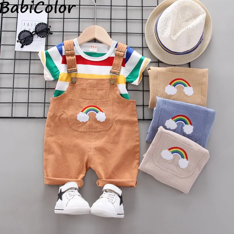 BabiColorкомплект летней одежды для маленьких мальчиков, одежда для маленьких девочек с героями мультфильмов, футболка + шорты на лямках, комплект одежды для младенцев, спортивный костюм, наряды 2020