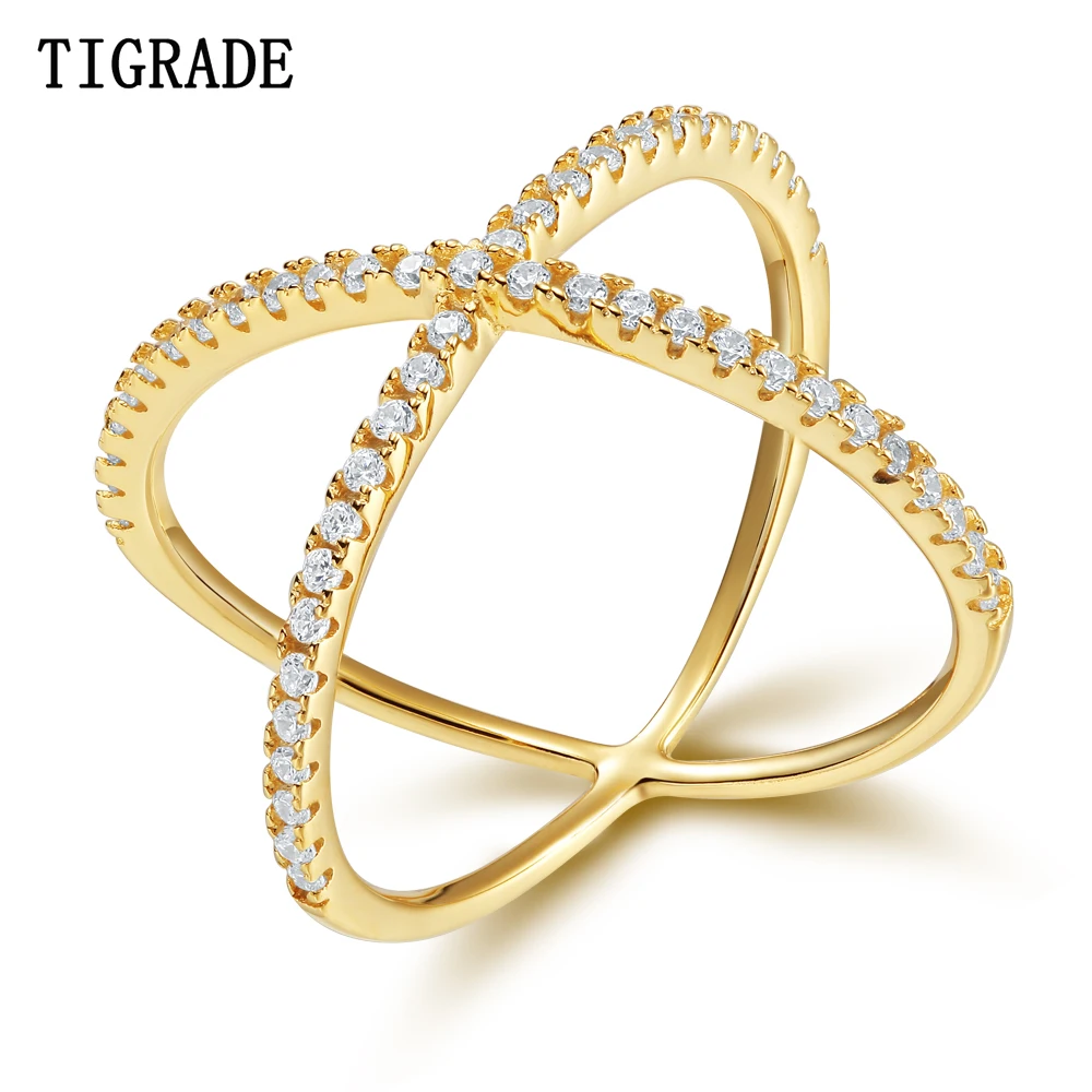 TIGRADE золото перекрестные кольца для Для женщин 925 Серебряное кольцо с кубическим инкрустация цирконием модные обручальные кольца для женщин ювелирные изделия вечерние Анель подарок