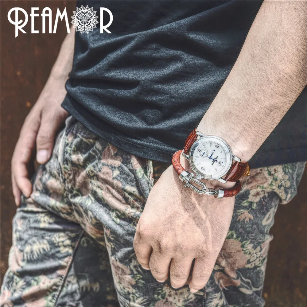 Мужские браслеты из натуральной кожи REAMOR 17-21 см, из нержавеюще...