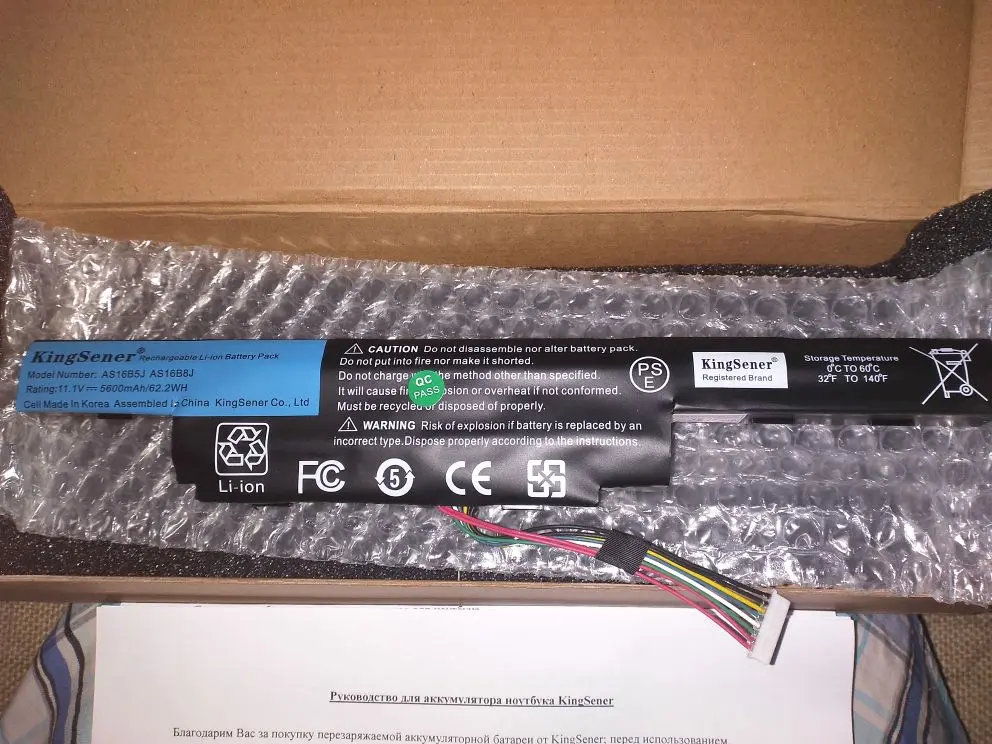 Аккумулятор KingSener AS16B5J, AS16B8J для ноутбука Acer Aspire E5-575G-53VG, 3ICR1966-2, гарантия 2 года