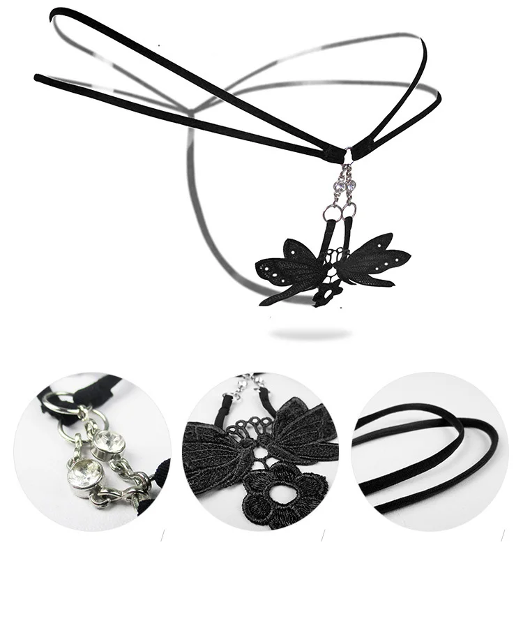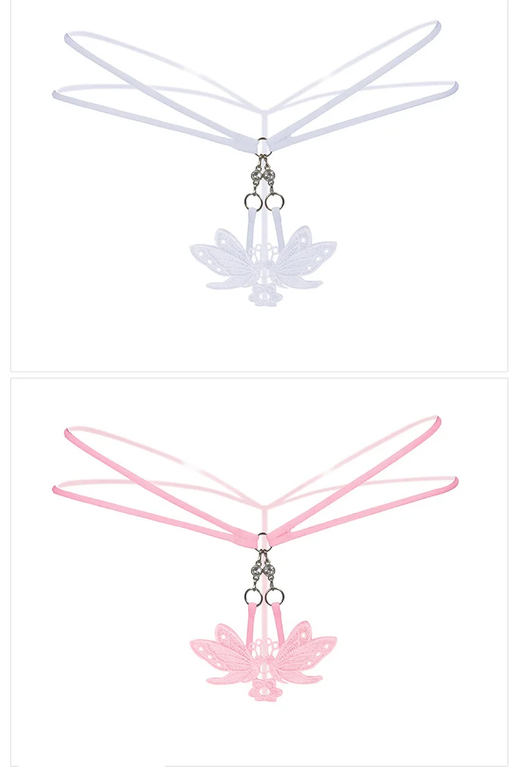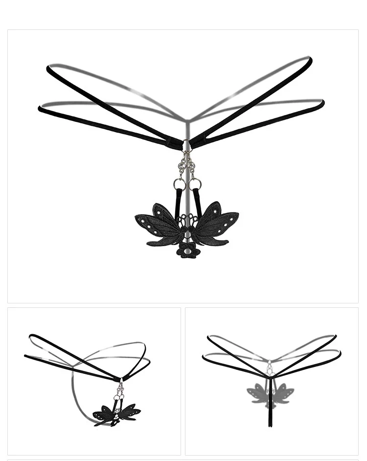 Женские сексуальные кружевные стринги с бабочками, прозрачные трусики, стринги с металлической цепочкой, бесшовное нижнее белье