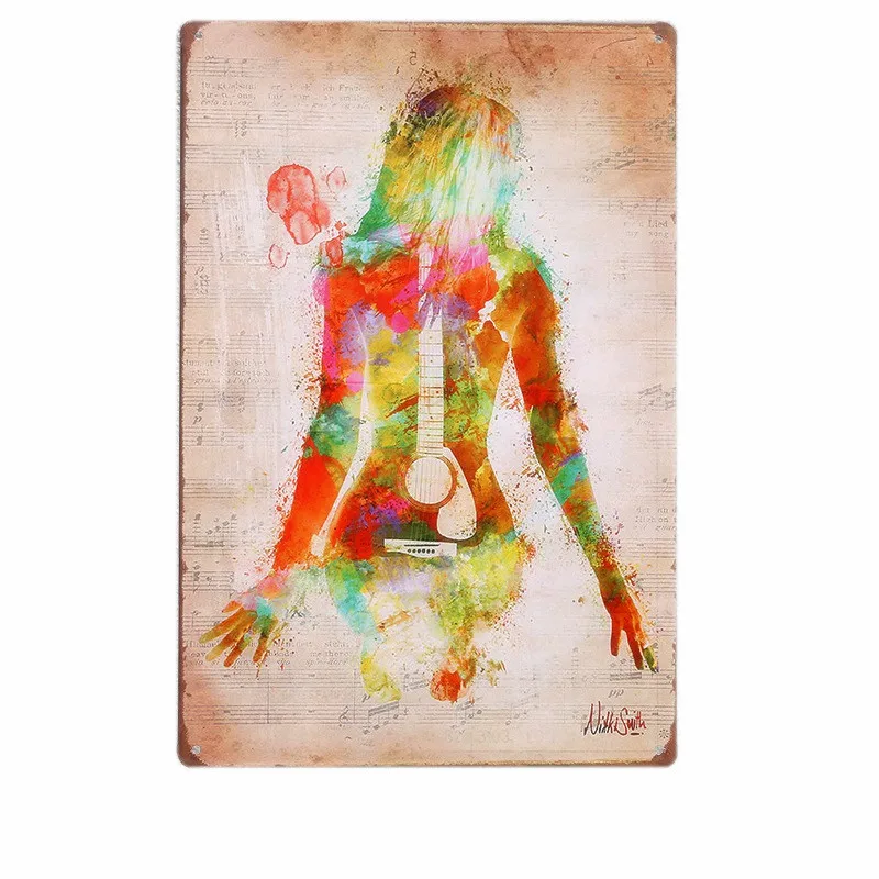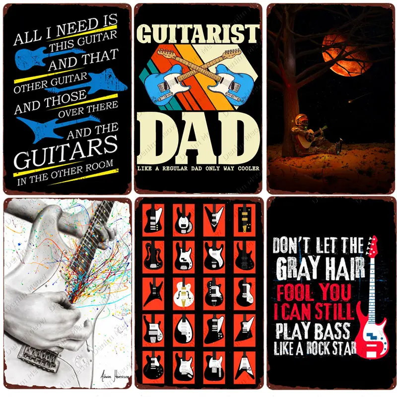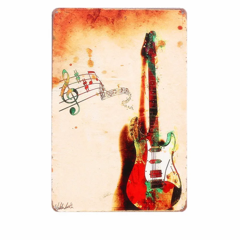 Винтажная музыка и гитара, милая подарочная металлическая Оловянная вывеска, Настенный декор, художественные плакаты, ретро-таблички, картина для дома, 20x30 см, N015