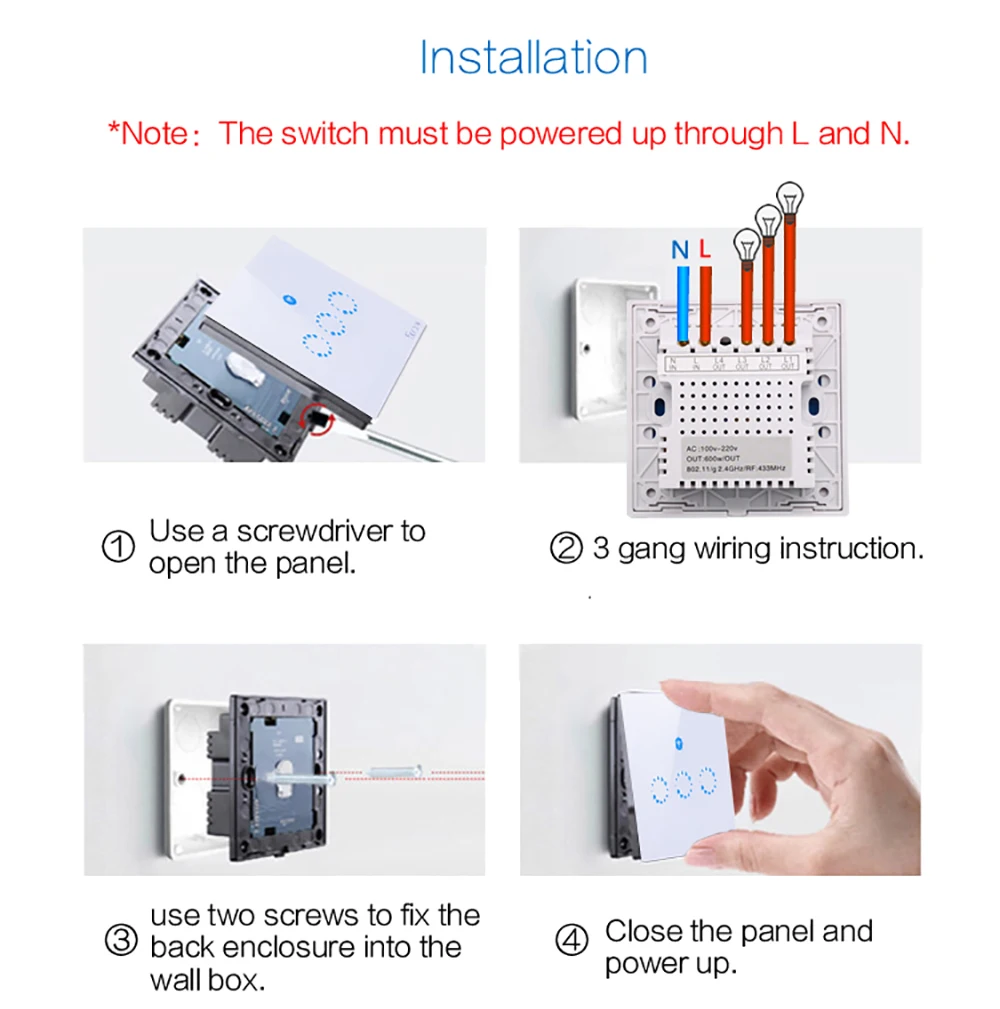 Примечание:Переключатель должен питаться через Lin (вход под напряжением) и Nin (нейтральный вход). В то время как Lout-это живой выход.
