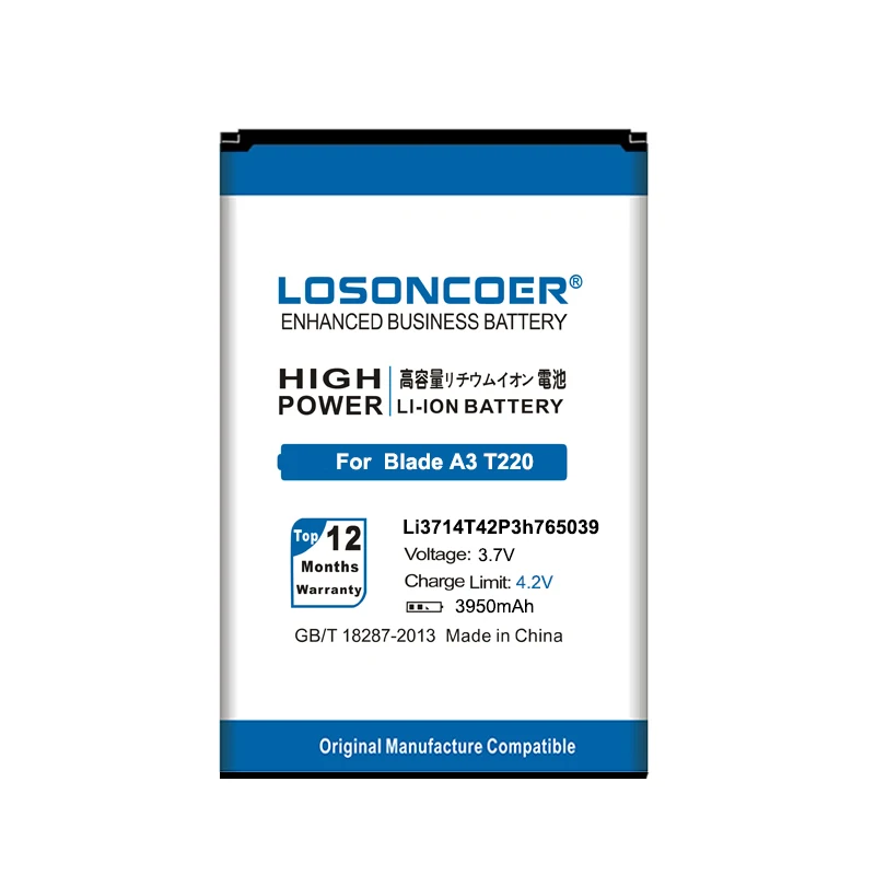 Аккумулятор LOSONCOER Li3714T42P3h765039 на 3950 мА ч для мобильных телефонов, аккумулятор для ZTE Blade A3 T220 AF3 T221 A5 AF5 T221 C341