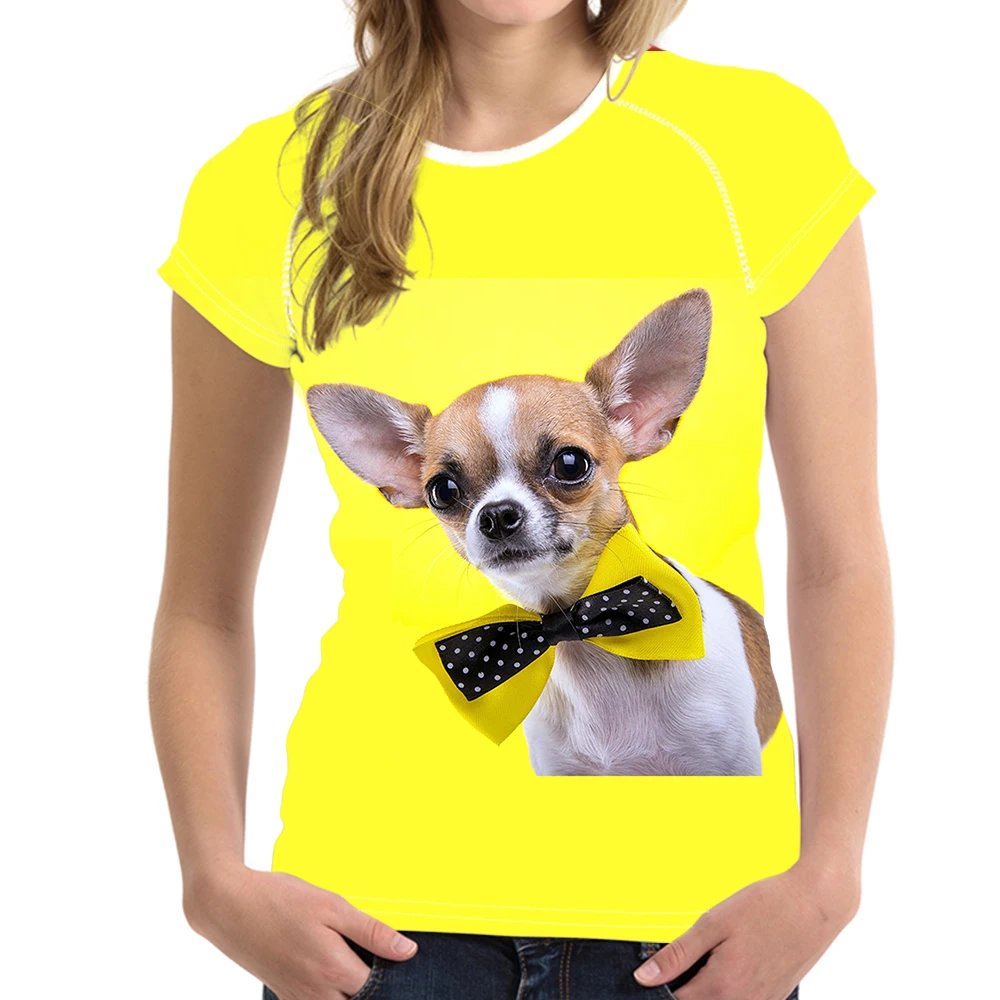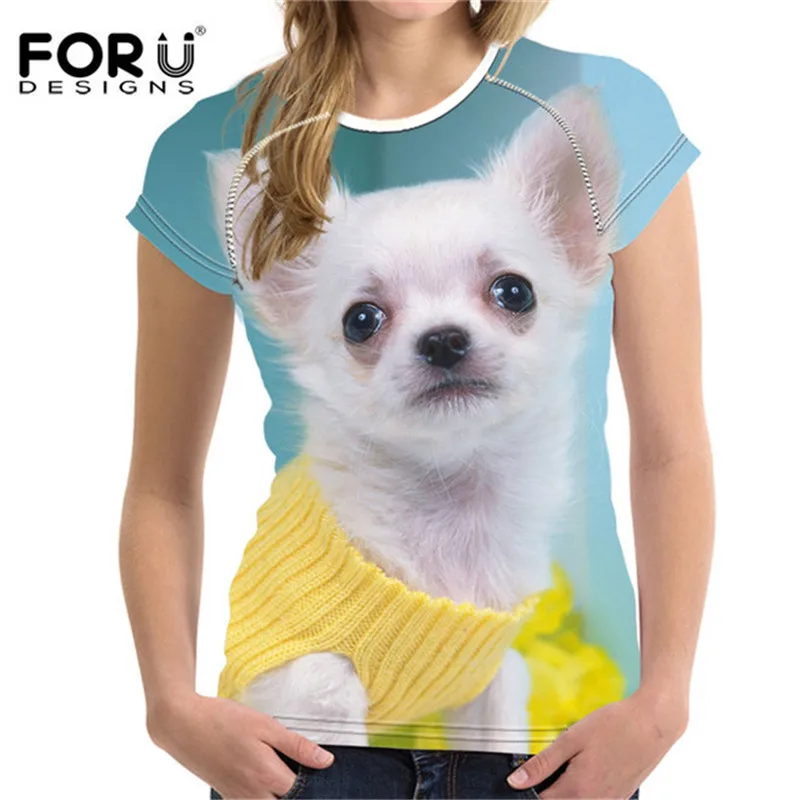 Женская футболка с коротким рукавом FORUDESIGNS, летняя футболка с изображением собаки, чихуахуа