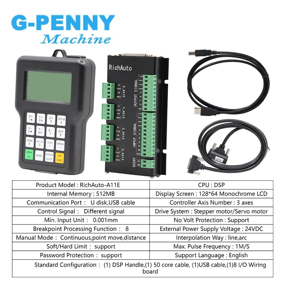 Бесплатная доставка, контроллер ЧПУ RichAuto DSP A11, оригинальный 3-осевой контроллер движения A11E, английская версия для фрезерного станка с ЧПУ
