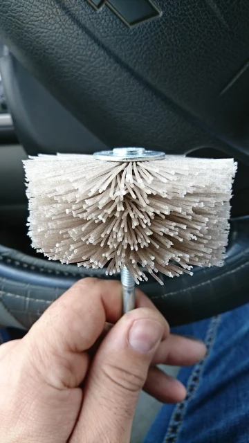 Очень неплохо. Для проверки поставил в шуруповерт и шлифанул какую-то досочку, оставшуюся после ремонта. Вообщем, без нажатия прекрасно снимает ворс. Если прижать с небольшим усилием - выгрызает канавки, глубина канавок легко регулируется прикладываемым усилием . Щетинки нейлоновые не вылетели( ну и естественно-3 дм2 шлифанул-не более). Вообщем, на вид штука годная.