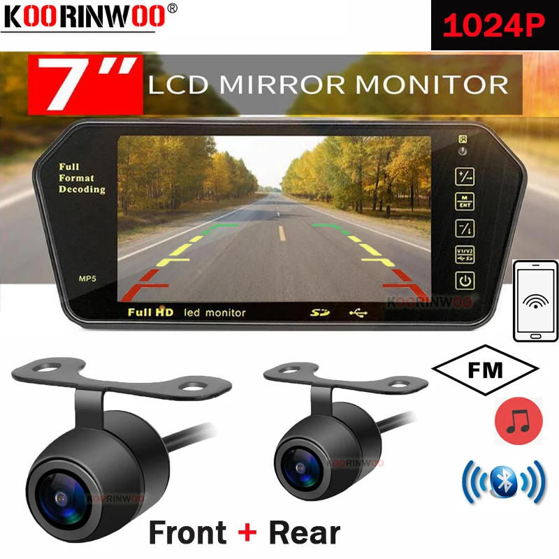 Автомобильный видеоплеер Koorinwoo, система AHD CCD с 7-дюймовым монитором, Bluetooth, MP5, FM-радио, камерой заднего вида и передней камерой