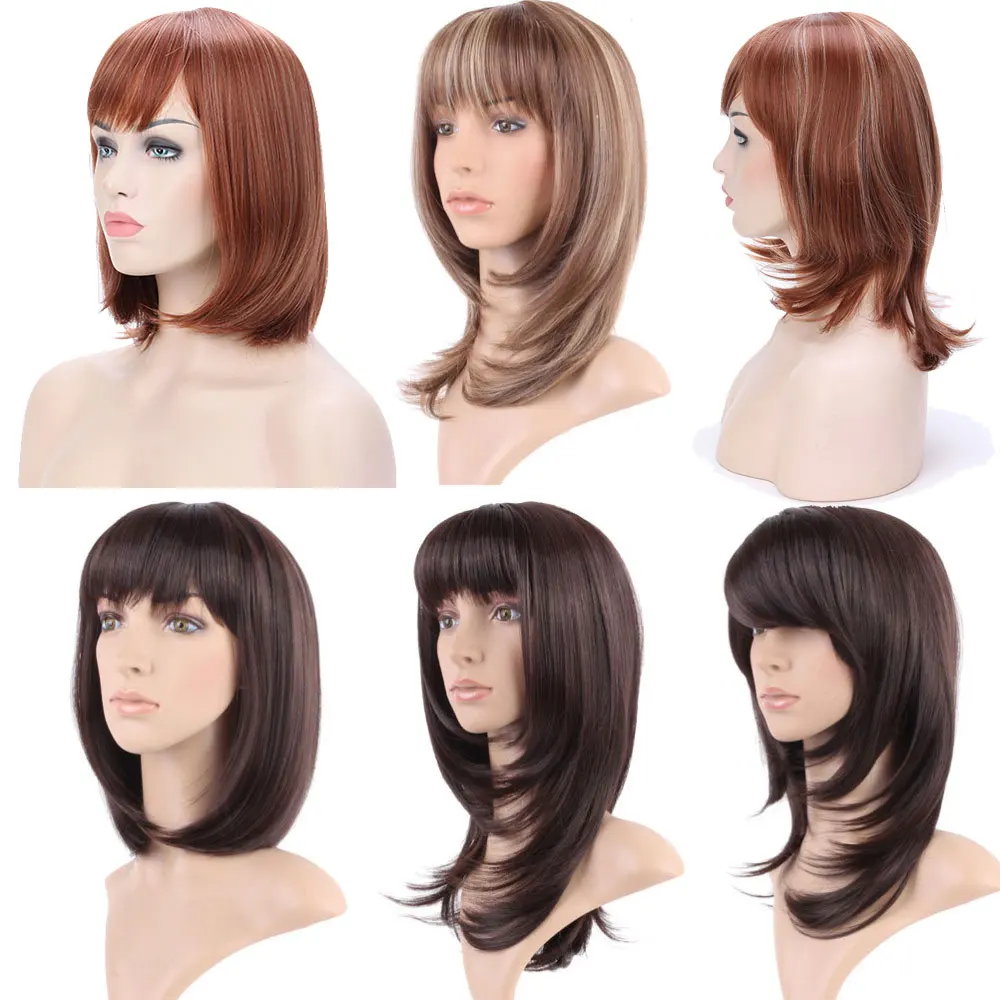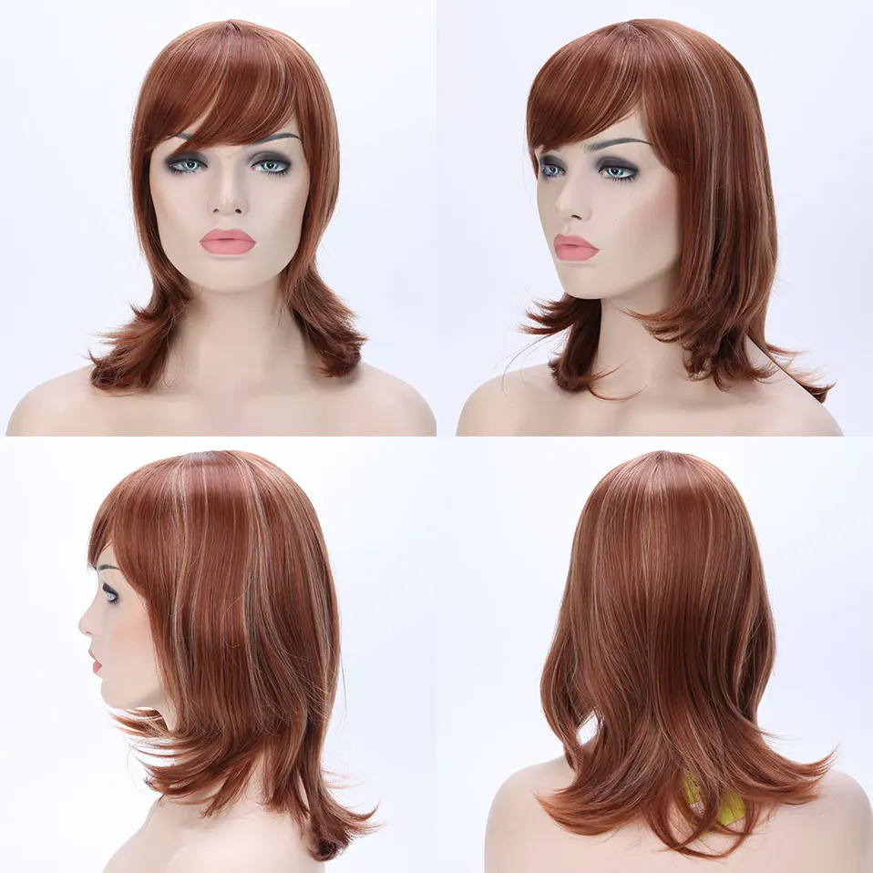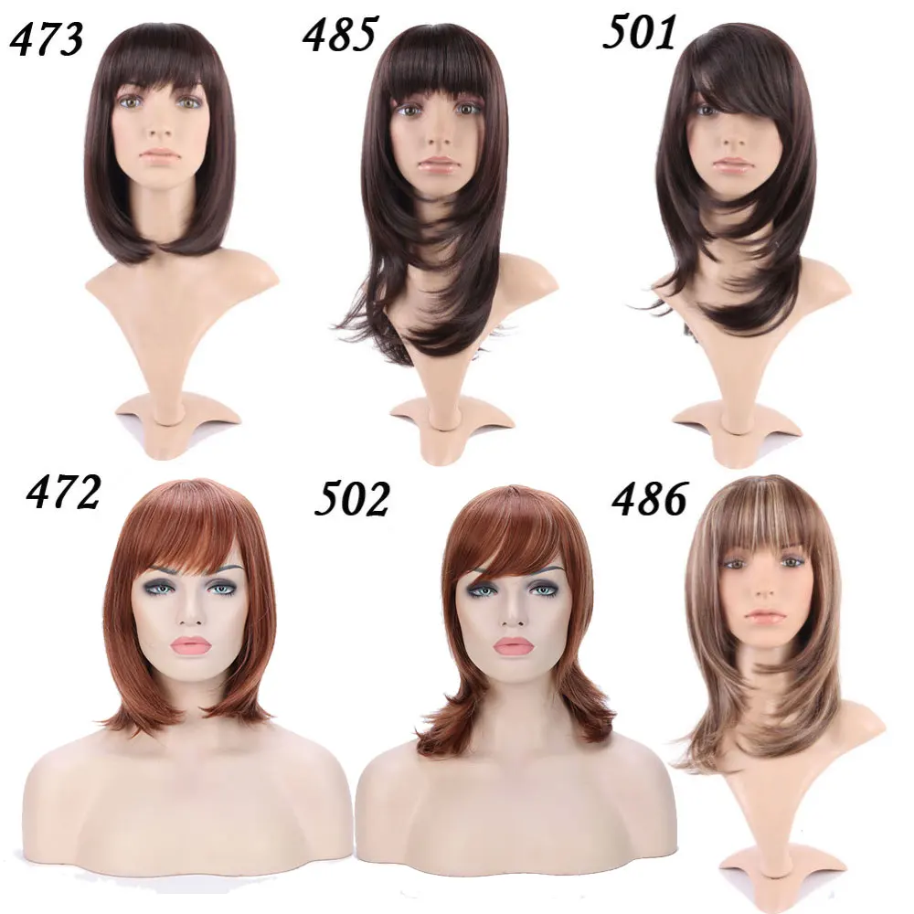 Snoilite прямые синтетические парики для афро-американских черных женщин длинные коричневые смешанные двухцветные парики с челкой