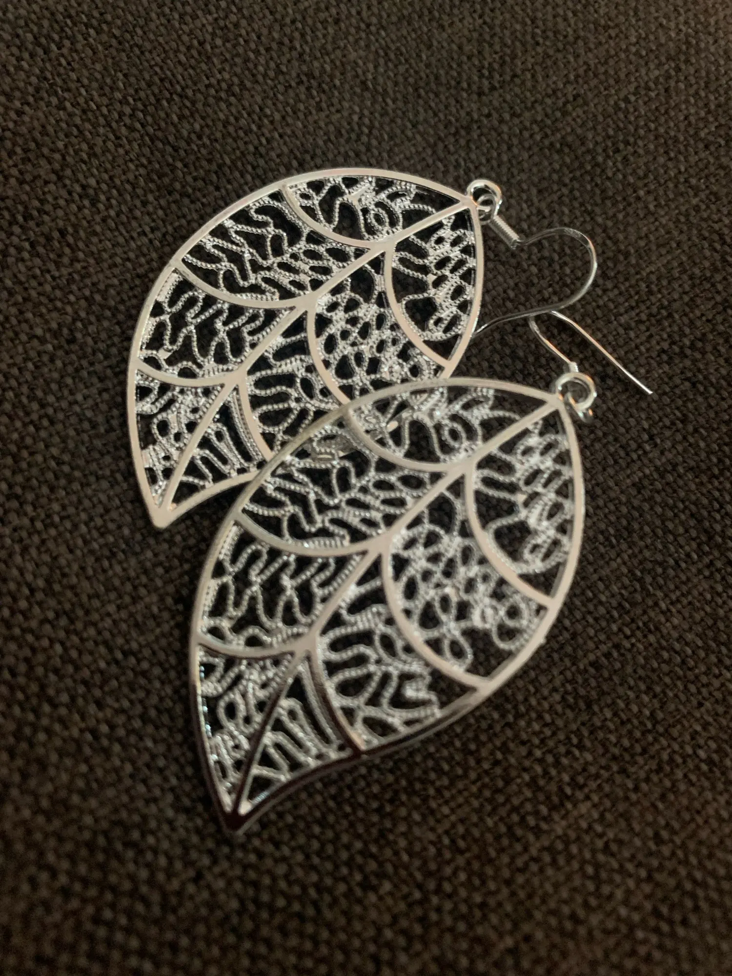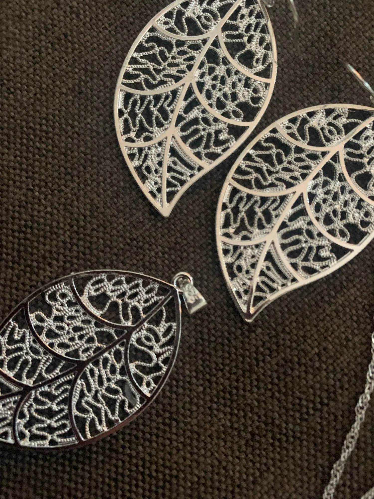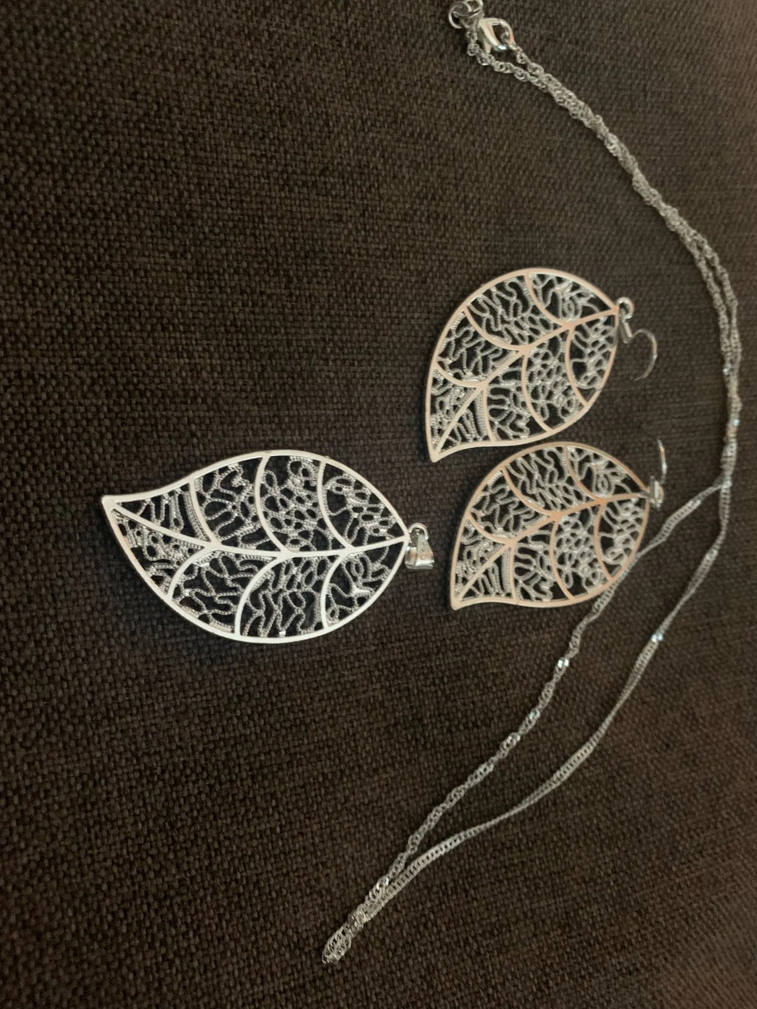 Женский комплект серебряных украшений, подвеска в виде листика, серьги, листья