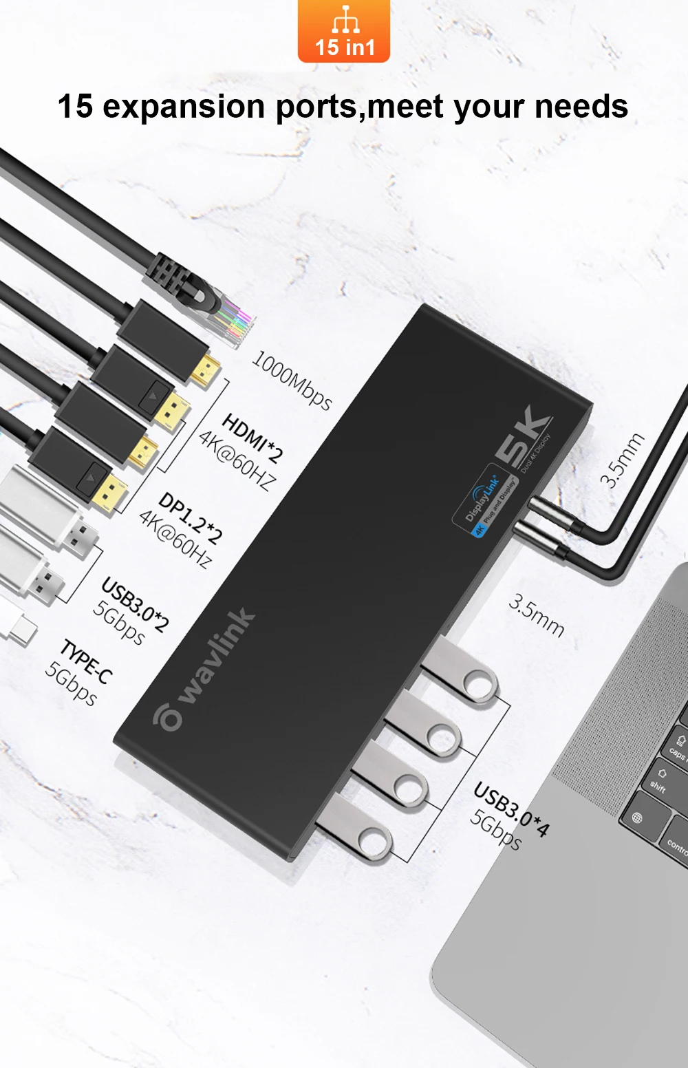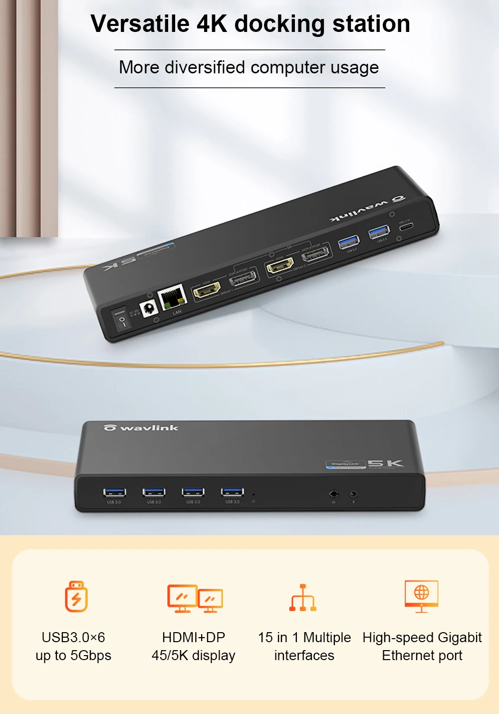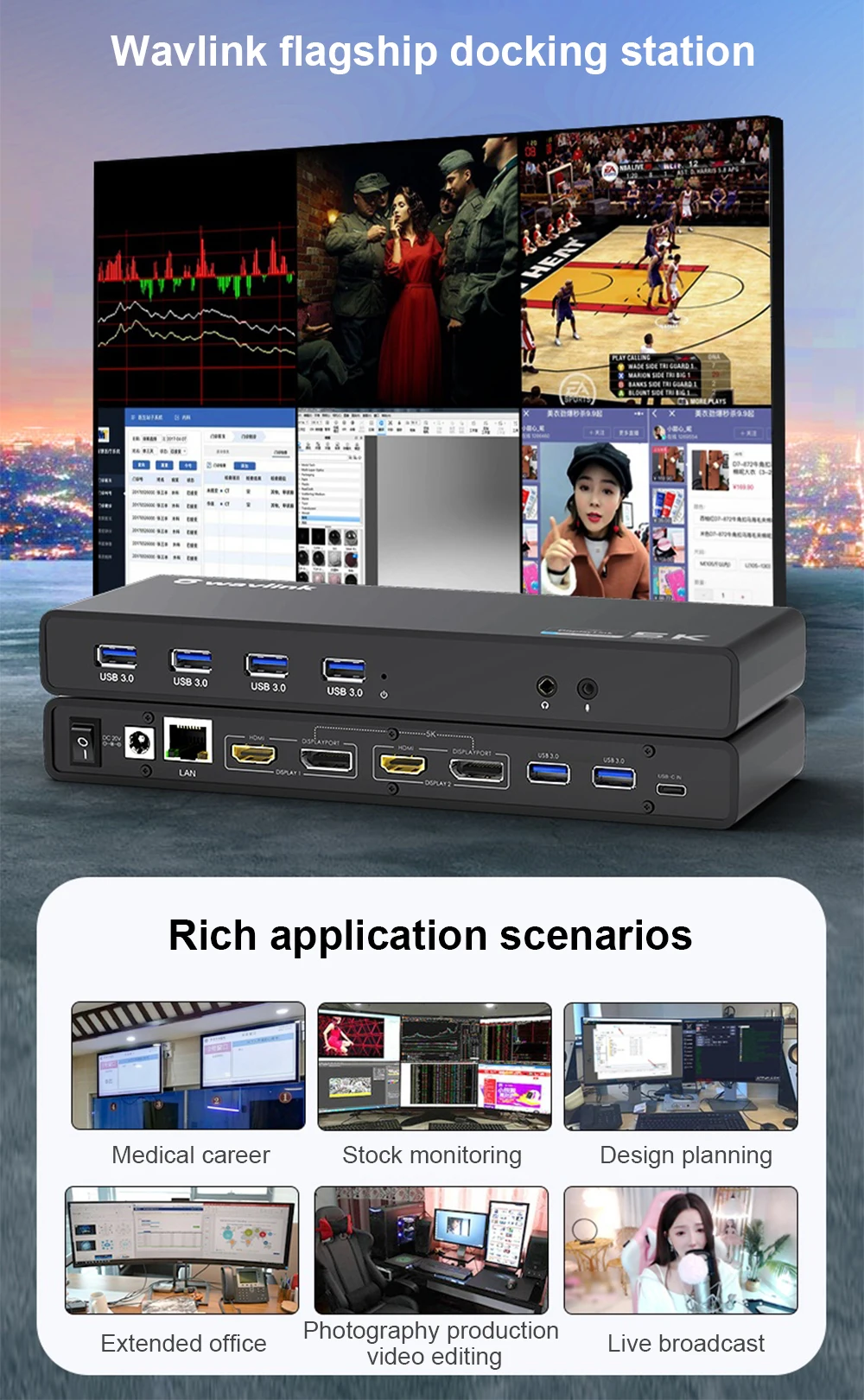 Универсальная док-станция Wavlink с разъемом USB 3,0 и поддержкой двух USB-C 4K Ultra