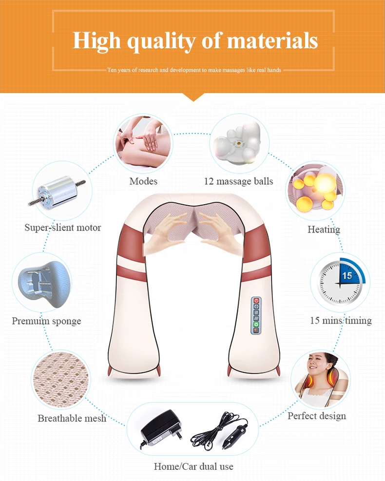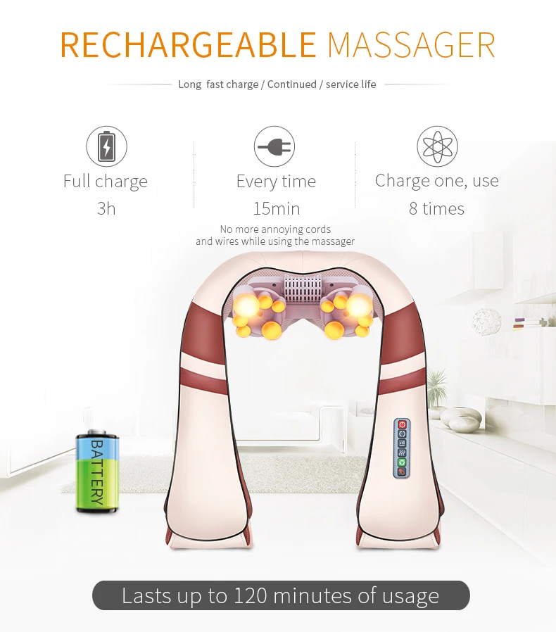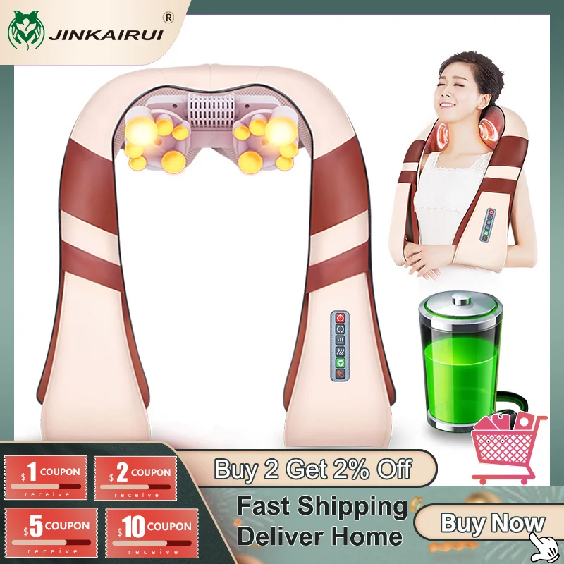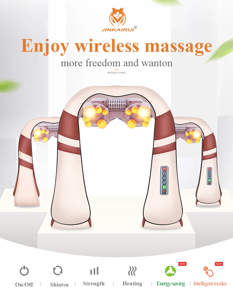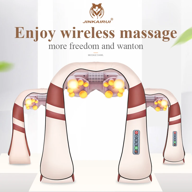 Бесплатная доставка, быстрая доставка, бесплатный Беспроводной Перезаряжаемый массажер JinKaiRui для шеи и спины, Массажер шиацу 3D, глубокое разминание, портативный массажер для всего тела с нагревом, облегчающий боль