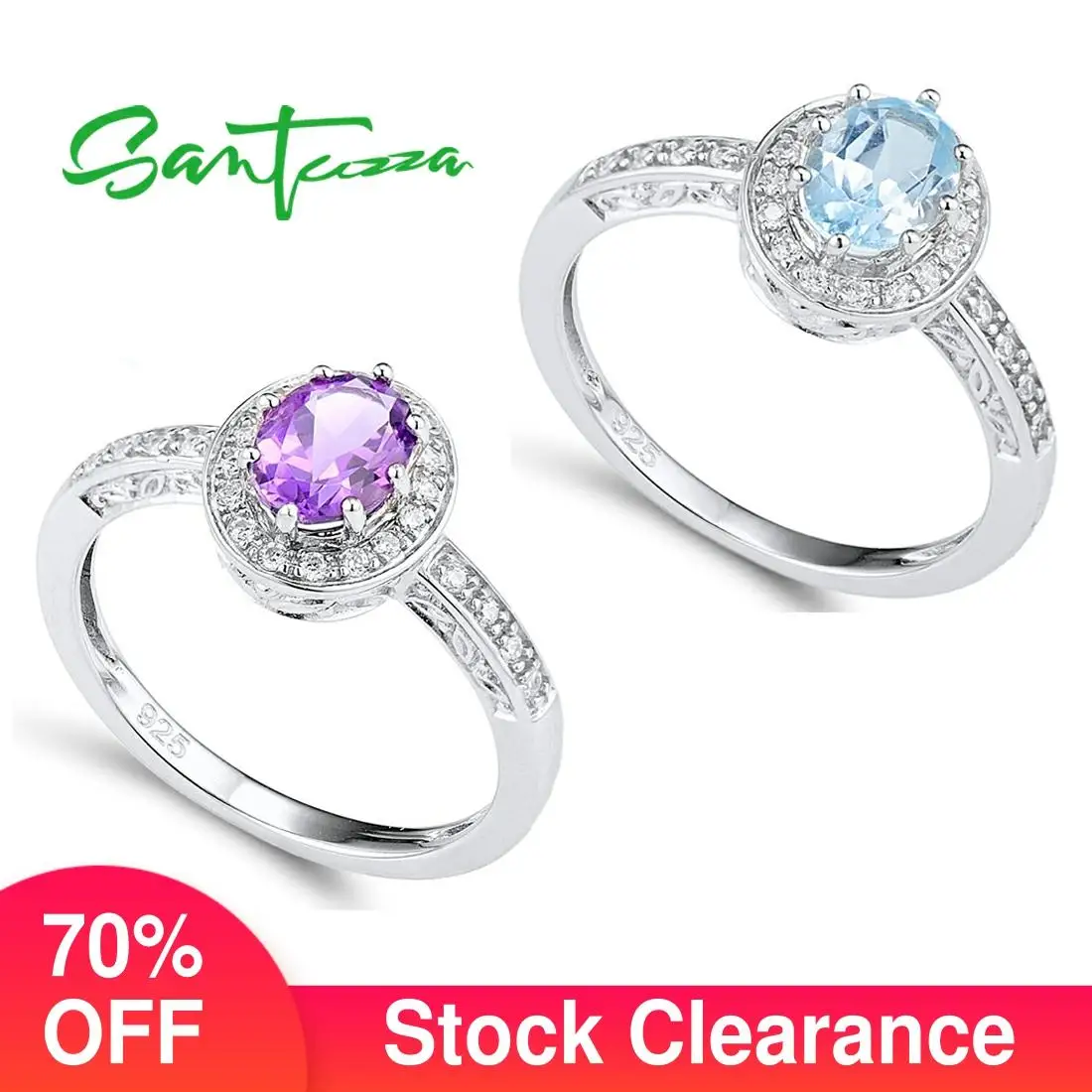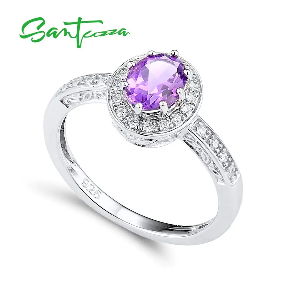 Женские серебряные кольца SANTUZZA, из стерлингового серебра 925 пробы с синими фиолетовыми камнями, ювелирные украшения для вечеринок