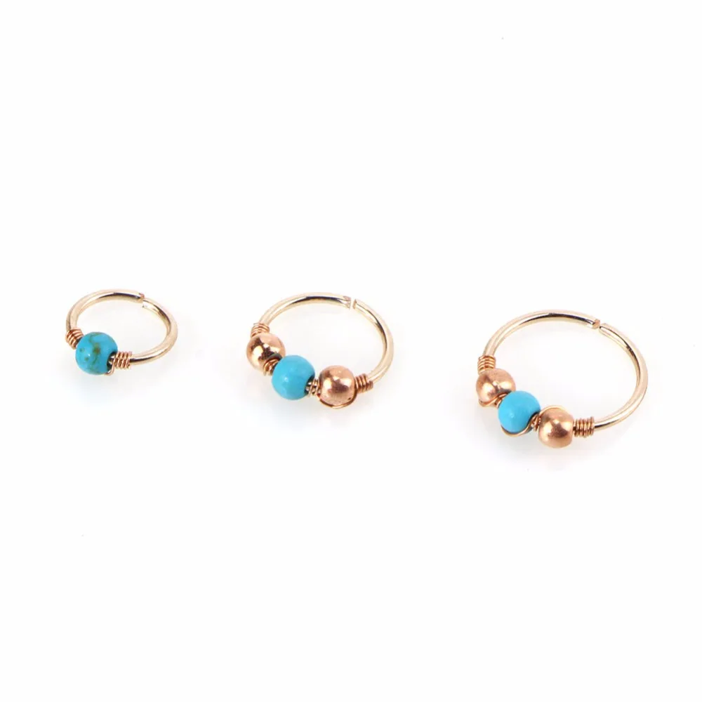 Кольцо для пирсинга носа с натуральным камнем золотистого и серебри...